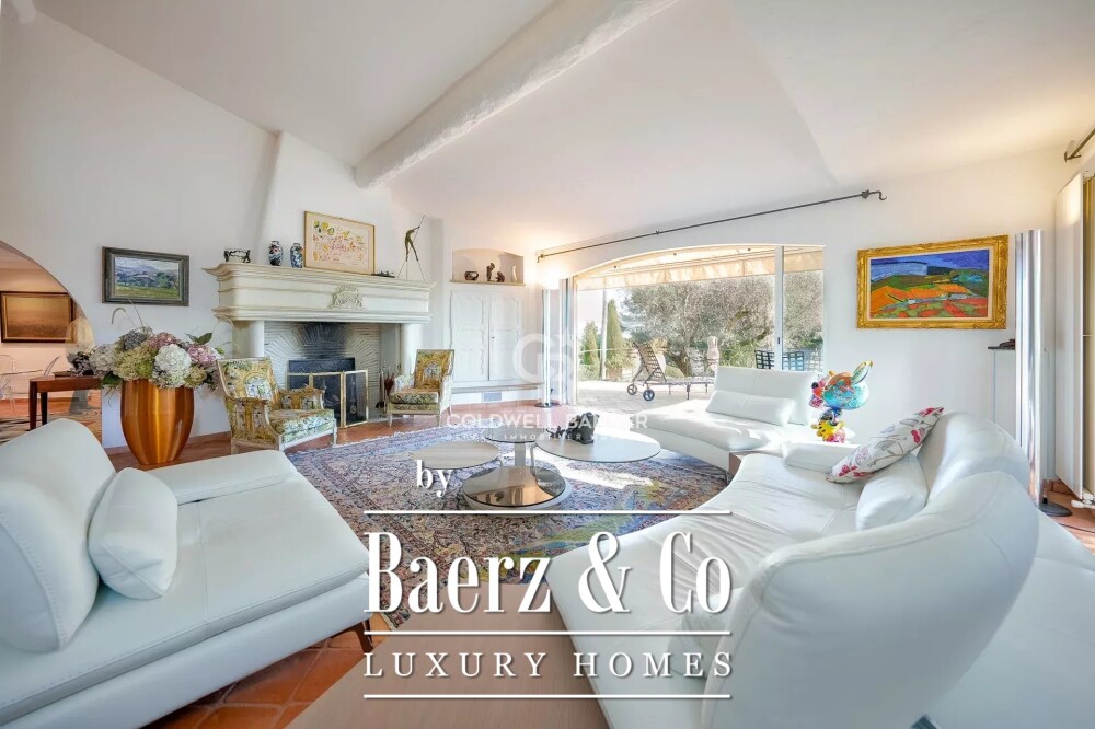 Villa Mougins met panoramisch uitzicht op de bergen bevindt zich in Castellaras-le-Vieux, een afgesloten domein op een heuvel nabij Mougins. Deze bijzondere woning maakt deel uit van een gerenommeerd domein, ontworpen door Jacques Couelle en gebouwd in 1957, bekend om zowel zijn architecturale signatuur als de uitgestrekte gemeenschappelijke tuinen. De villa is één van de zeldzame dubbele villa’s en biedt 269,10 m² woonruimte conform Carrez-wet, aangevuld met 40 m² aan bijgebouwen en 137 m² terrassen, alles omringd door een vlakke, privé tuin.