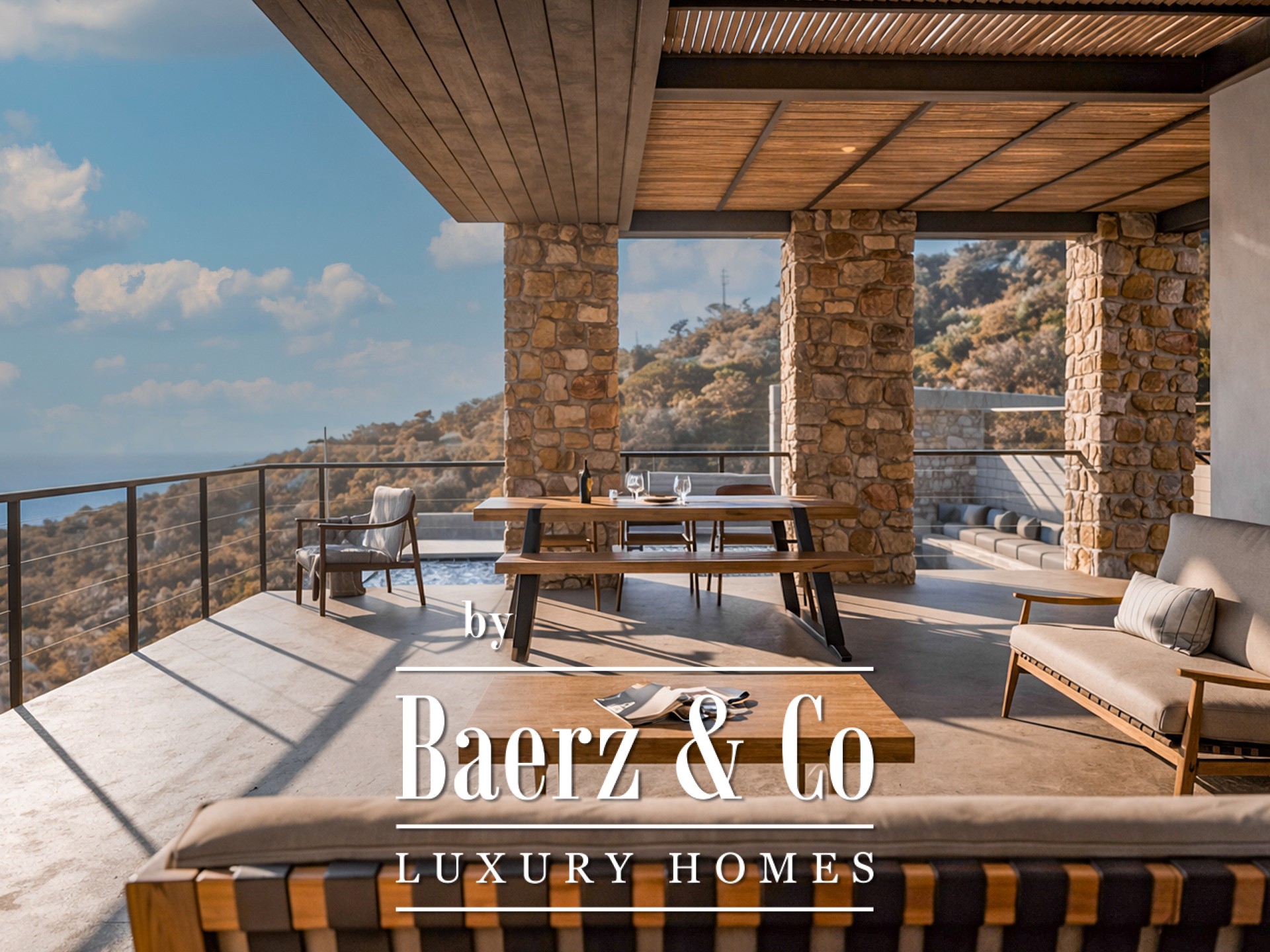 Buitenleven staat centraal in het ontwerp, met aangelegde privétuinen, schaduwrijke zitplekken onder een pergola en ruime loungezones rondom het zwembad, harmonieus geïntegreerd in de mediterrane setting. De villa is gebouwd met solide stenen muren, dubbele beglazing en energiezuinige oplossingen, behaalt energielabel A en biedt het hele jaar door comfort. Voorzieningen zijn onder meer een eigen warmtepomp, airconditioning en een veiligheidsslot. De locatie biedt rust aan zee, met behoud van de nabijheid van Nafplio en snelle toegang tot de internationale luchthaven van Athene. Deze woning is een ingetogen toevluchtsoord waar architecturale verfijning samensmelt met het ritme van het mediterrane leven.