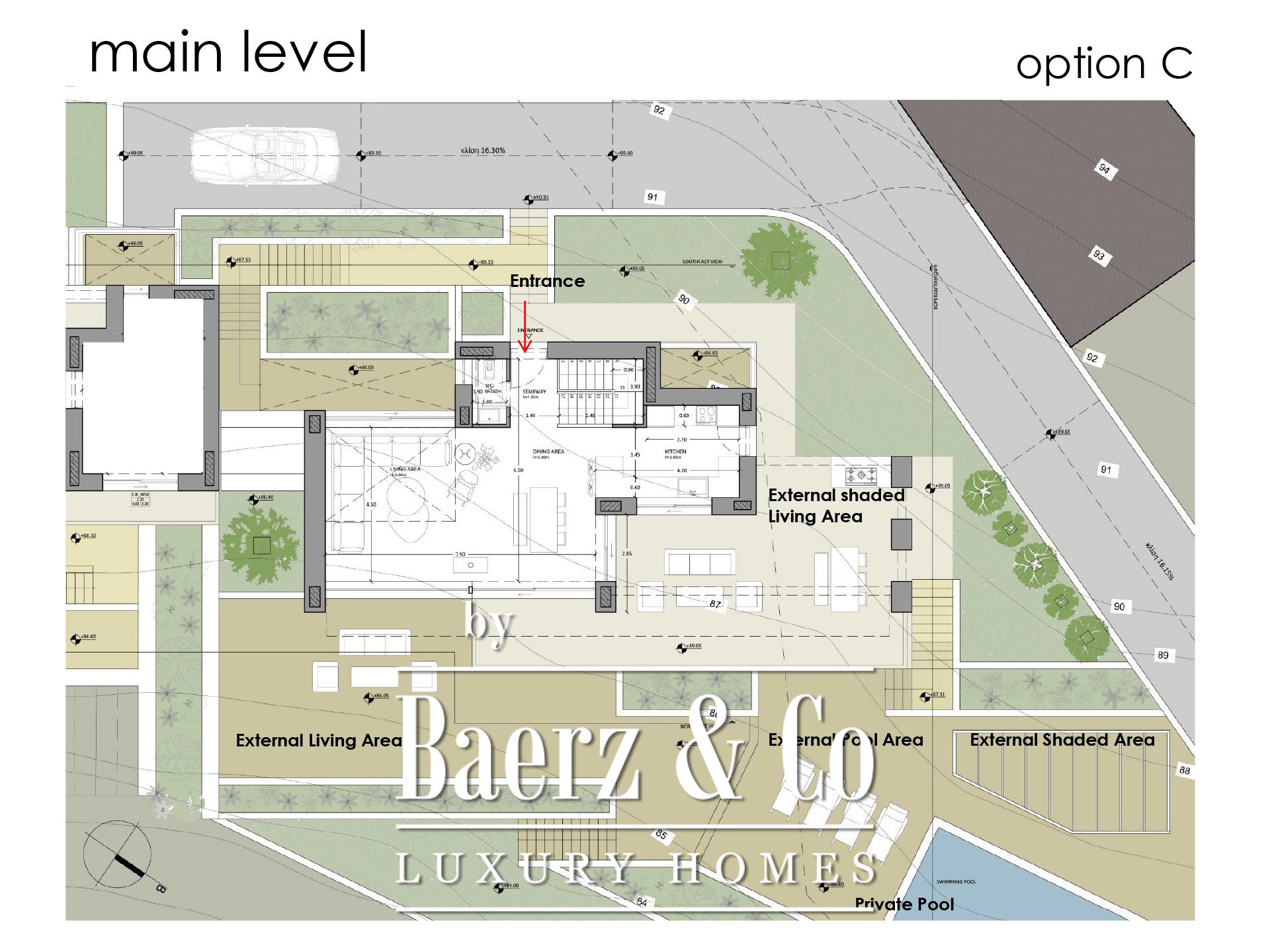 Een overdekt buitengedeelte verwelkomt bewoners en gasten en verbindt de hoofdwoning met een zelfstandig gastenverblijf. Zo kan flexibel worden ontvangen in alle privacy. De begane grond beschikt over een open woonruimte, een aparte keuken en directe toegang tot schaduwrijke terrassen, een balkon, een uitzichtplatform en een stijlvol vormgegeven zwembad van circa 60 m². De entresol biedt een open suite met eigen badkamer, ideaal als hoofdslaapkamer, terwijl het souterrain bestaat uit twee slaapkamers met ensuite badkamers en een ruimte geschikt voor ontspanning, werk of vrijetijdsbesteding.