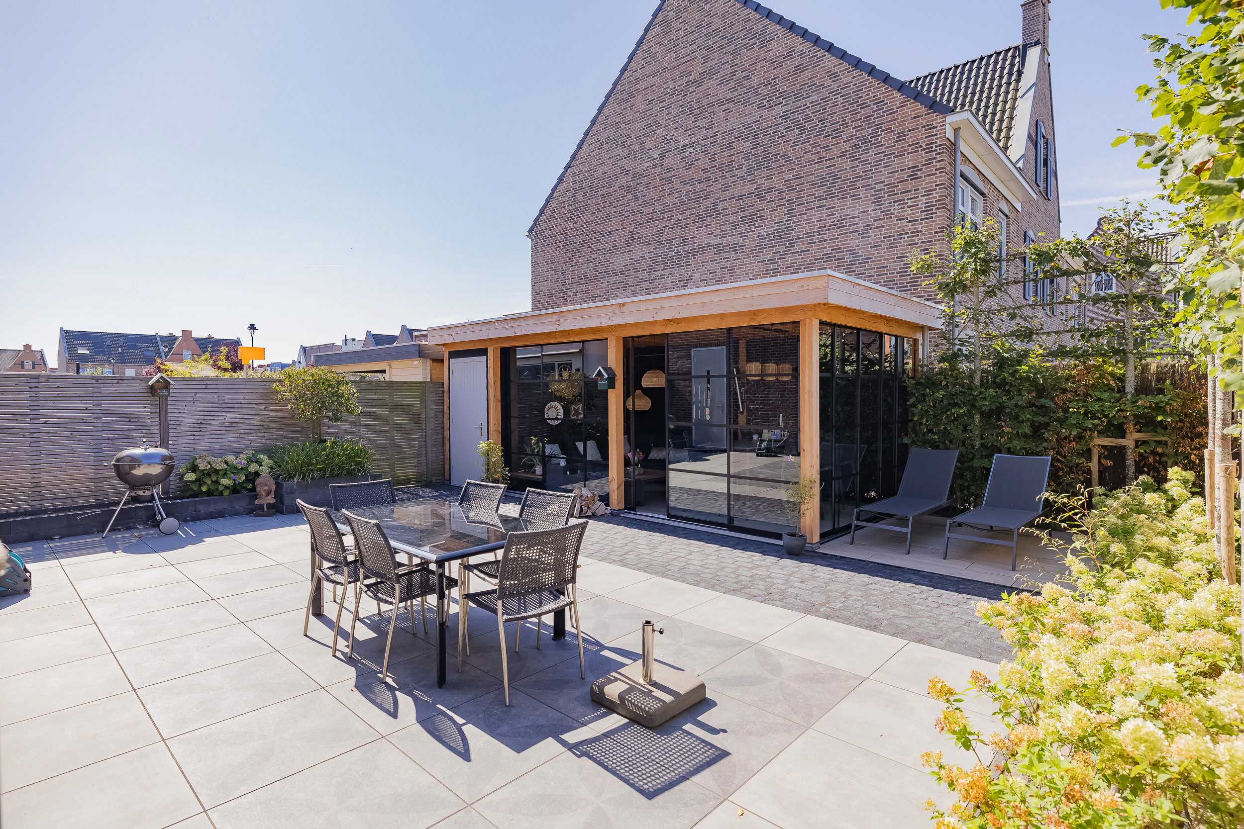De zonnige tuin (ZW) met veranda maakt het woongenot compleet. Hier kun je alle seizoenen genieten van het buitenleven. De achterom zorgt voor een handige extra toegang tot de achtertuin.