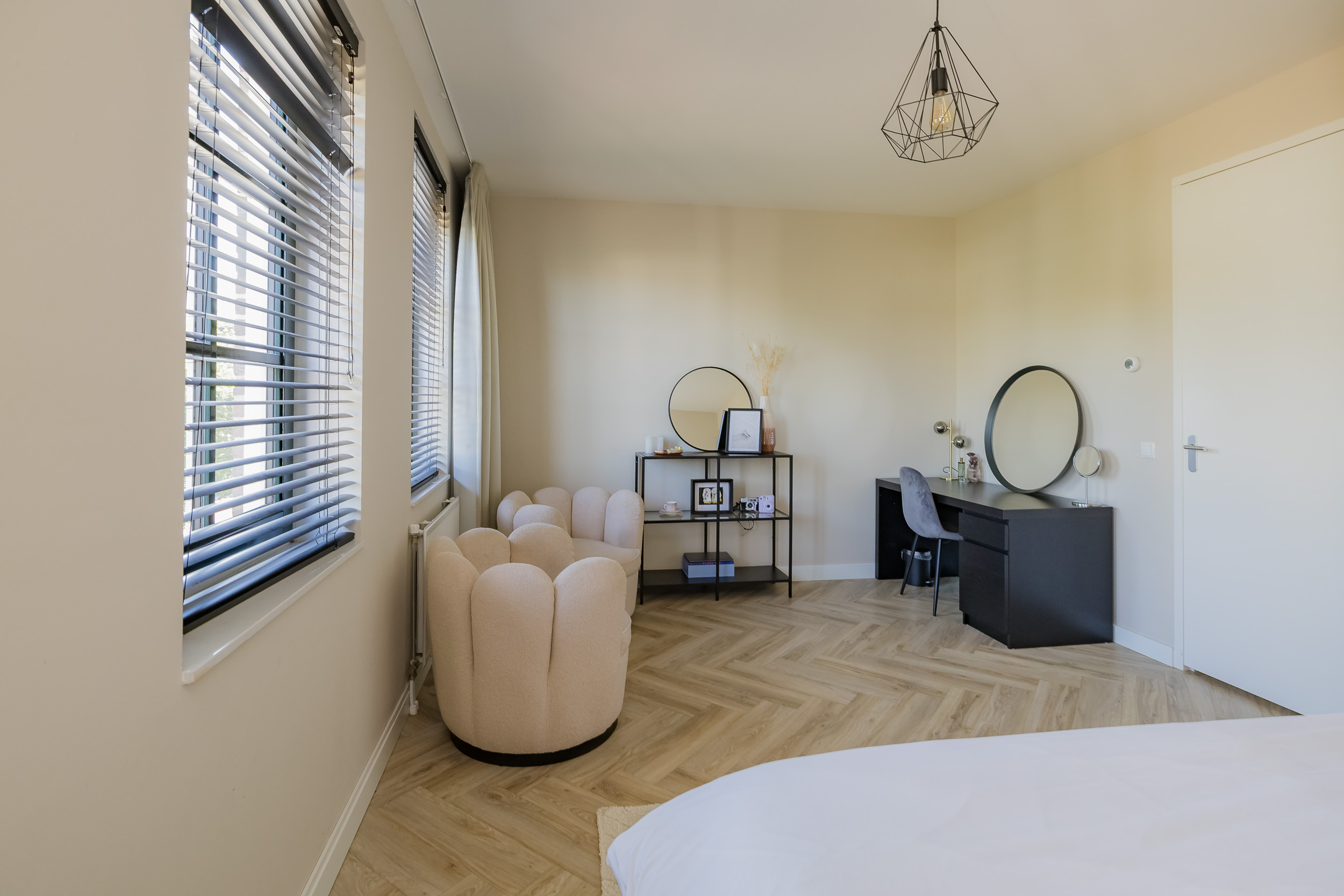De tweede verdieping is een heerlijk privéverblijf: een royale slaapkamer met een eigen inloopkast en een ruime, luxe badkamer. Een ideale plek om volledig tot rust te komen. Tevens is er een was-/stookruimte welke is voorzien van een Japans toilet.