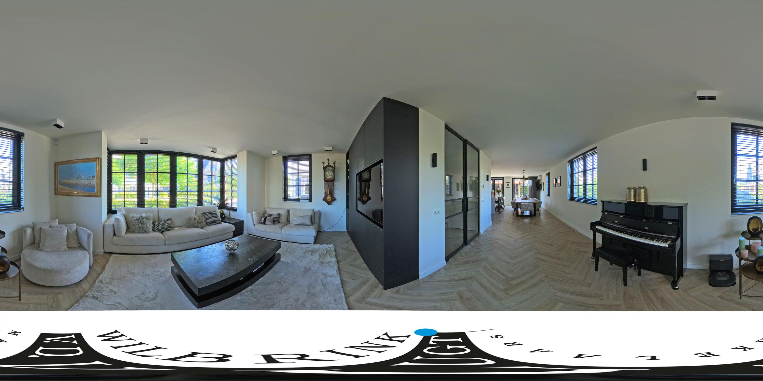 In de hal, met garderobekast en gastentoilet, geven stalen deuren toegang tot de ruime, zeer lichte woonkamer met fraai wandmeubel en een grote erker. Aan de achterzijde van de woning is de ruime woonkeuken met kookeiland gesitueerd - perfect om samen te komen met familie en vrienden. Twee paar openslaande deuren naar de tuin maken dat binnen en buiten moeiteloos in elkaar overlopen. Dankzij de vloerverwarming geniet je hier het hele jaar door van een behagelijke temperatuur.
