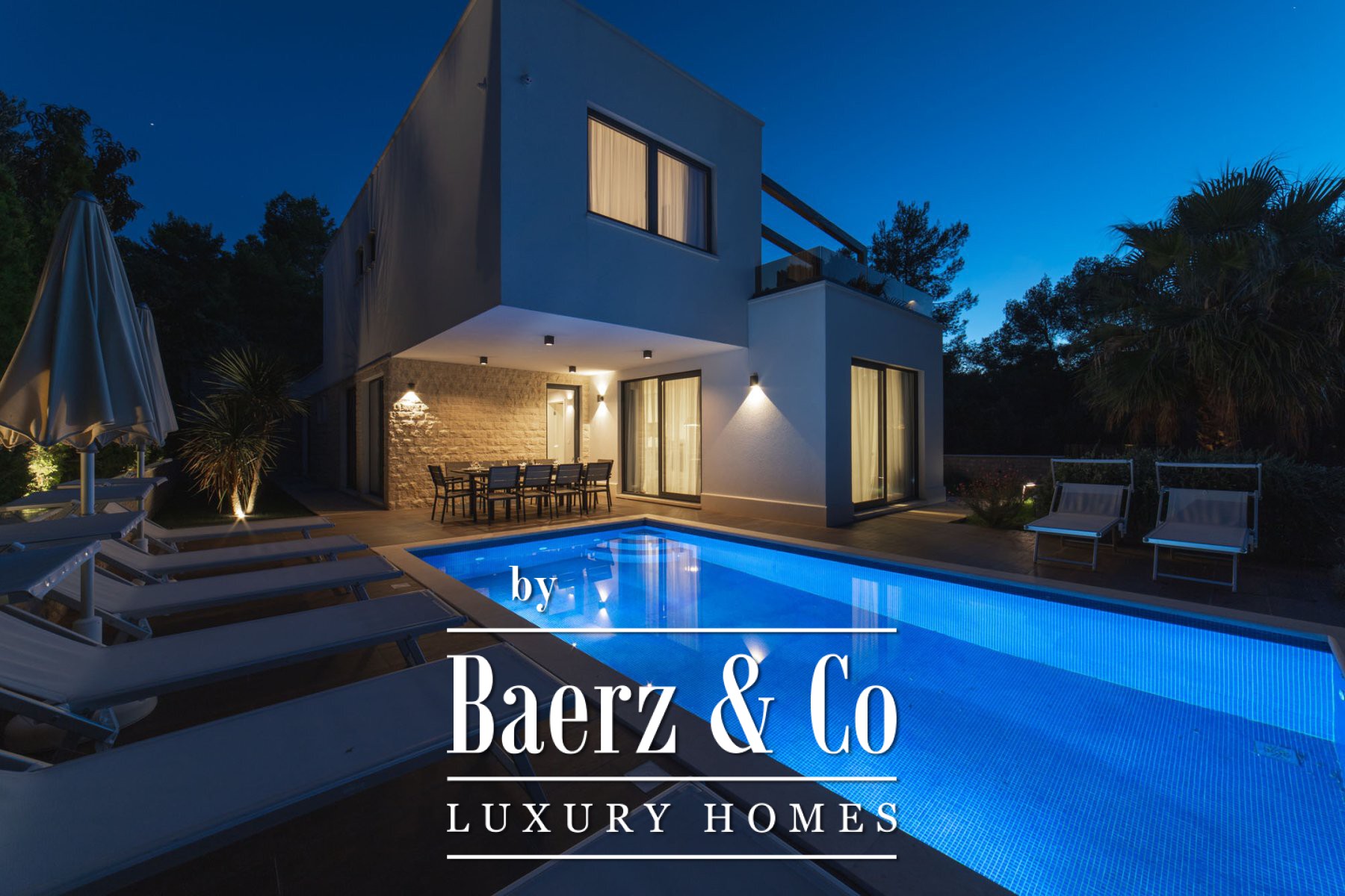 De begane grond en eerste verdieping zijn naadloos verbonden via een moderne keuken, eetkamer en een royale woonkamer. Zes slaapkamers en zeven badkamers bieden ruime accommodatie; elke ruimte is zo gepositioneerd dat het panoramische uitzichten op zee, de historische skyline van Trogir en de verre bergen optimaal omlijst. Een zonnig terras nodigt uit tot buitenleven, de besloten patio beschikt over een buitenzwembad, zonneterras en een stijlvolle barbecueplek.