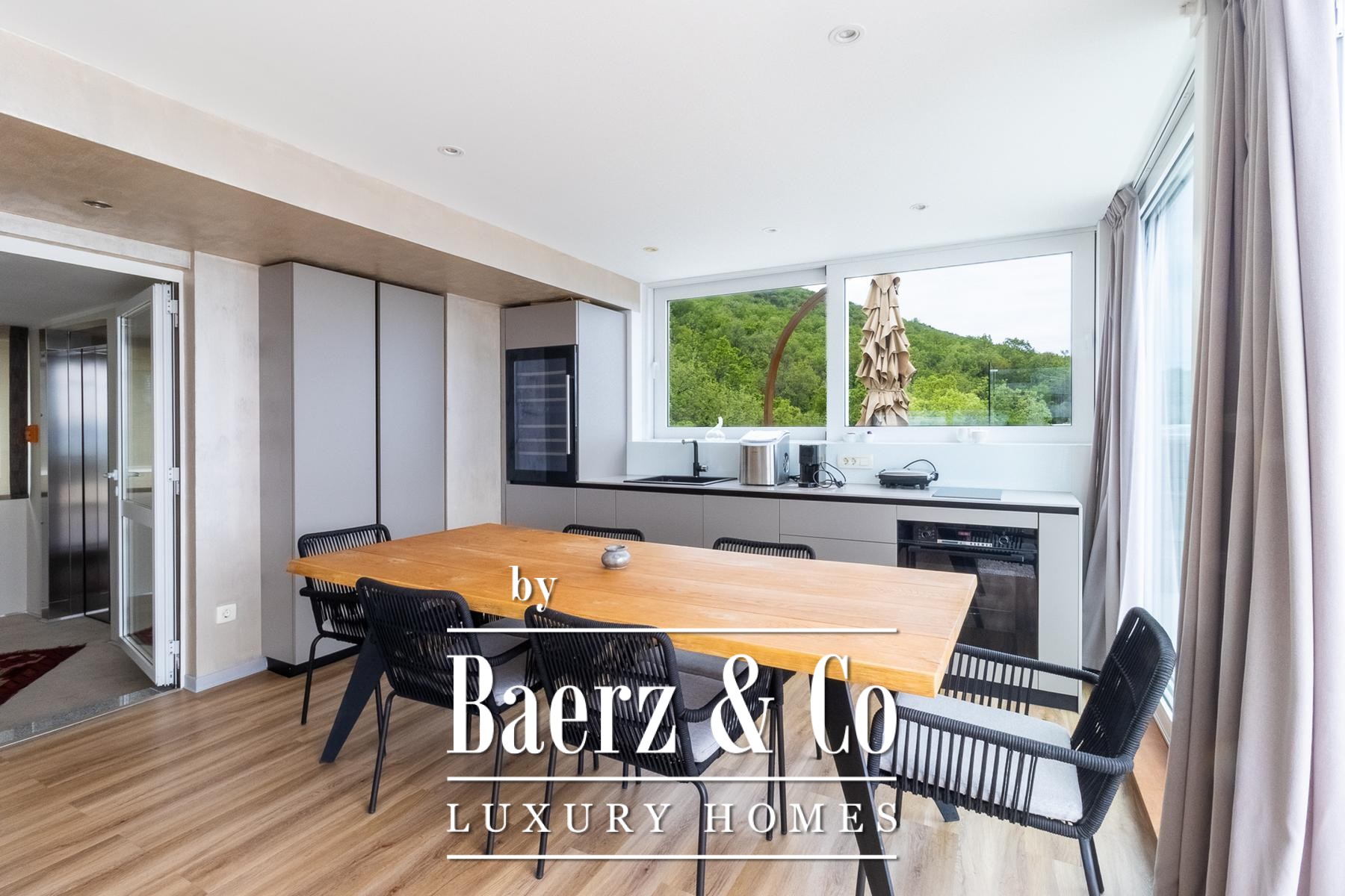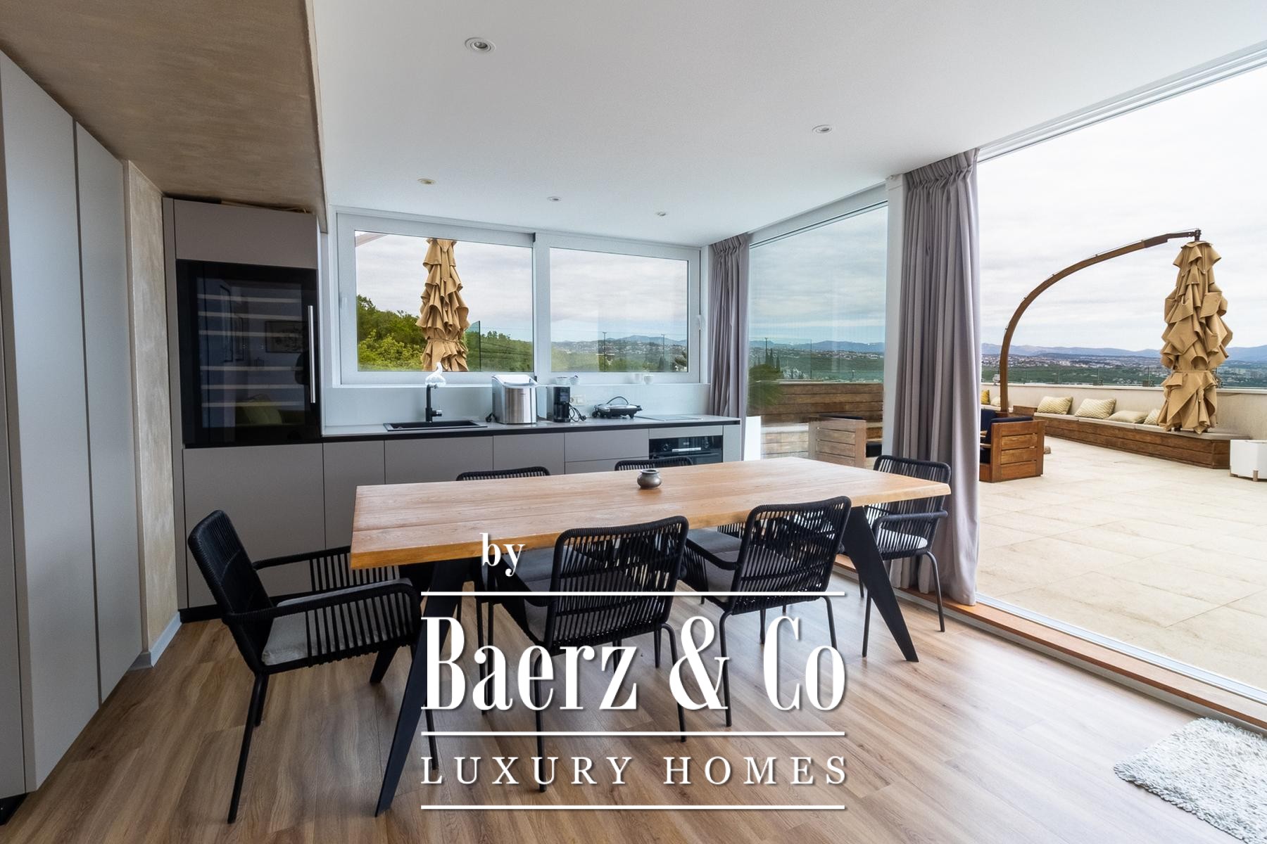Het luxe penthouse Opatija ligt op slechts 490 meter van de zee en beslaat een indrukwekkende 267 m² aan verfijnde leefruimte in een modern gebouw. De woning beschikt over vier slaapkamers en vier badkamers, elk zorgvuldig ontworpen voor een ingetogen gevoel van luxe en hedendaags comfort. Het ruime interieur wordt gevormd door een open woon-, eet- en keukenruimte, aangevuld met een werkkamer, twee inloopkasten, bijkeuken en extra doorloopzones voor optimaal dagelijks gemak.