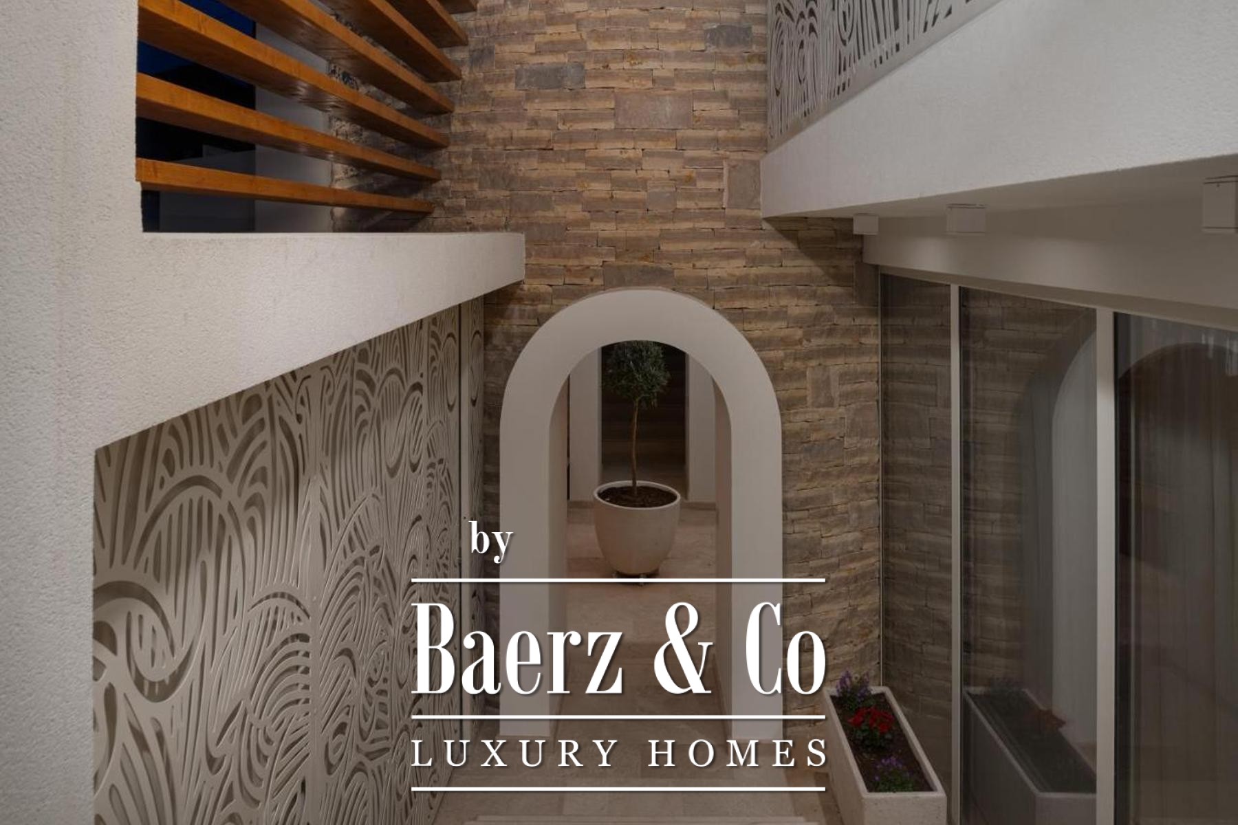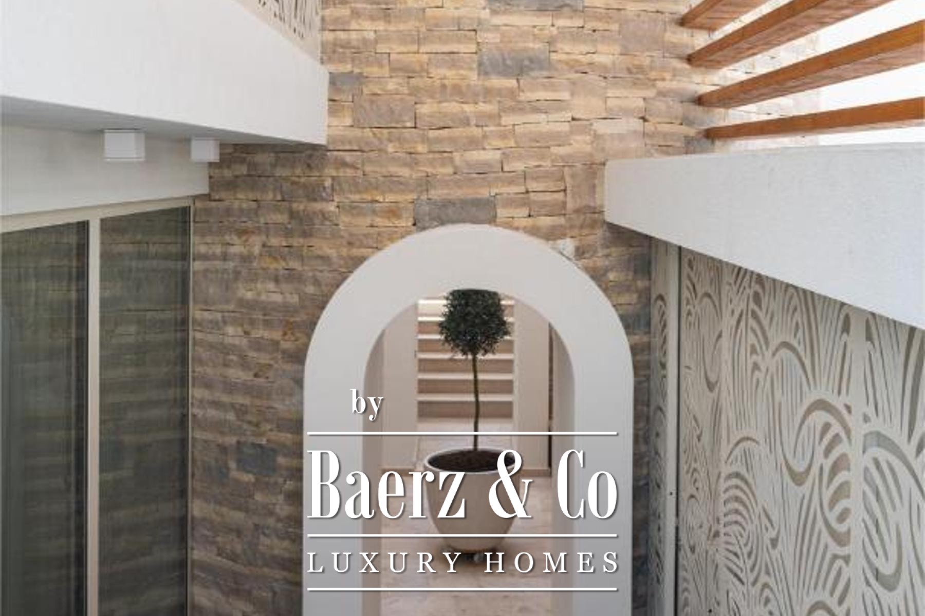 De entree wordt gemarkeerd door een stijlvolle trap aan de zuidwestzijde, die leidt naar een ruimtelijke en open ontvangsthal. Op de begane grond staat het open woonconcept centraal, met een designerkeuken met centraal kookeiland, een eetruimte voor sociale momenten en een comfortabele lounge. Schuifdeuren verlengen het woongedeelte naar het zonovergoten terras en het zwembad, waardoor binnen en buiten naadloos in elkaar overlopen. De voorzieningen maken het dagelijks leven compleet: een gastentoilet, volledig uitgeruste wasruimte, sfeervolle wijnkelder, wellnessruimte met jacuzzi en sauna, en een moderne fitnessstudio.
