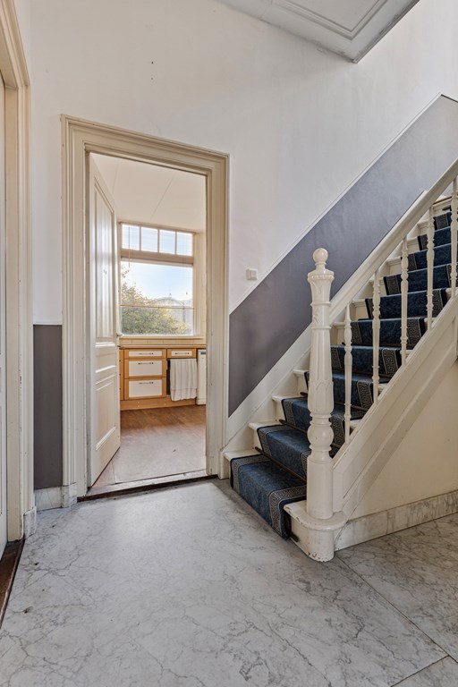 In de lichte, open woonkamer valt het natuurlijke daglicht direct op, dankzij de royale raampartijen aan zowel de voor- als achterkant. Deze ruimte nodigt uit om een comfortabele zithoek en een royale eethoek te creëren. Karakteristieke elementen zoals een charmante schouw, sierlijke ornamenten en een warme houten vloer geven de woonkamer een sfeervolle uitstraling. Met enige modernisering kan deze ruimte weer een eigentijdse look en feel krijgen, perfect passend bij uw eigen woonwensen.