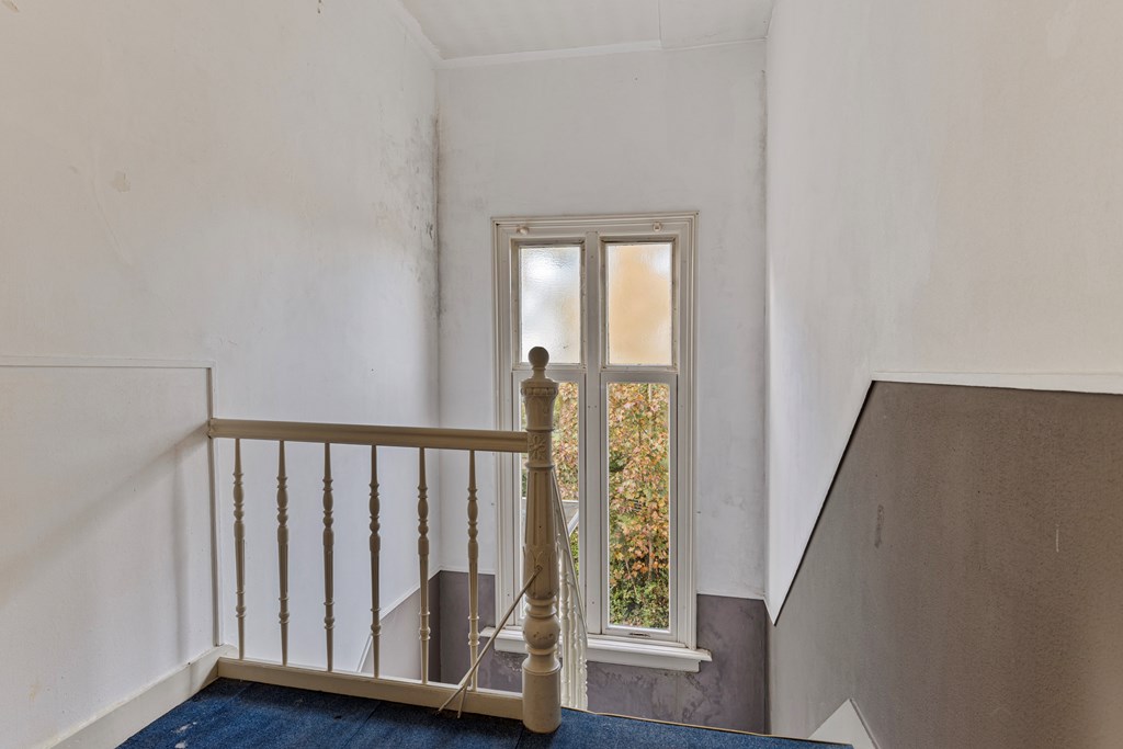 De hal op de begane grond leidt naar de trap, die uitkomt op de 1e verdieping. Hier bevinden zich drie ruime slaapkamers en de badkamer, allen met voldoende daglicht en mogelijkheden voor modernisering en herinrichting.