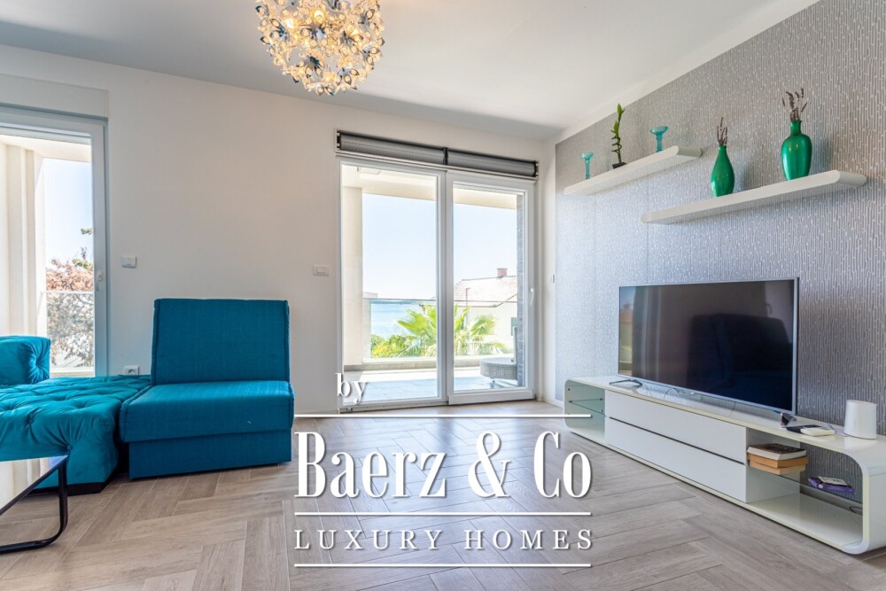 Op de eerste verdieping bevindt zich een woonkamer die uitkomt op een loggia met uitzicht over de Adriatische Zee, vergezeld door drie extra slaapkamers met eigen badkamer. Het hoogste niveau richt zich volledig op ontspanning en welzijn, met een sauna, speelkamer en een zomerse keuken die uitkomt op een royaal terras met jacuzzi, buitendouche, zonneterras en een overloopzwembad — allemaal met vrij uitzicht op zee.