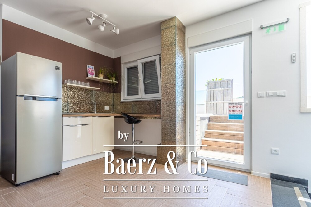 Villa Rogoznica vormt een eigentijds toevluchtsoord met 400 m² volledig gerenoveerde elegantie in een rustige baai. Deze villa in Rogoznica ligt op de tweede rij aan zee en biedt zowel privacy als directe toegang tot het water, met een zorgvuldig aangelegd perceel van 449 m² en onopvallende parkeerruimte voor meerdere auto's.