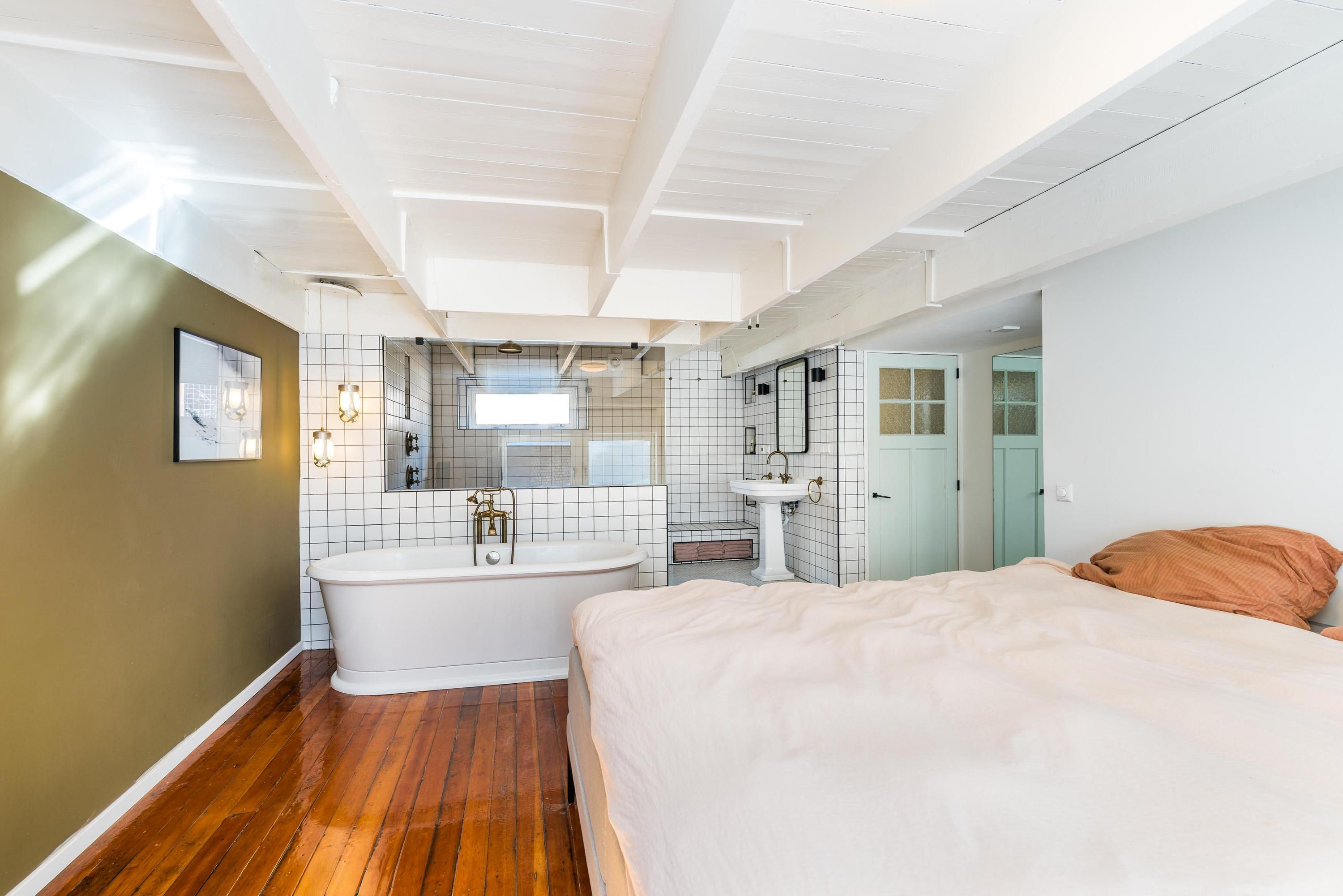 Op de eerste verdieping bevindt zich een royale slaapkamer met grote kasten, een apart toilet en een comfortabele badkamer met ligbad en dubbele douche.