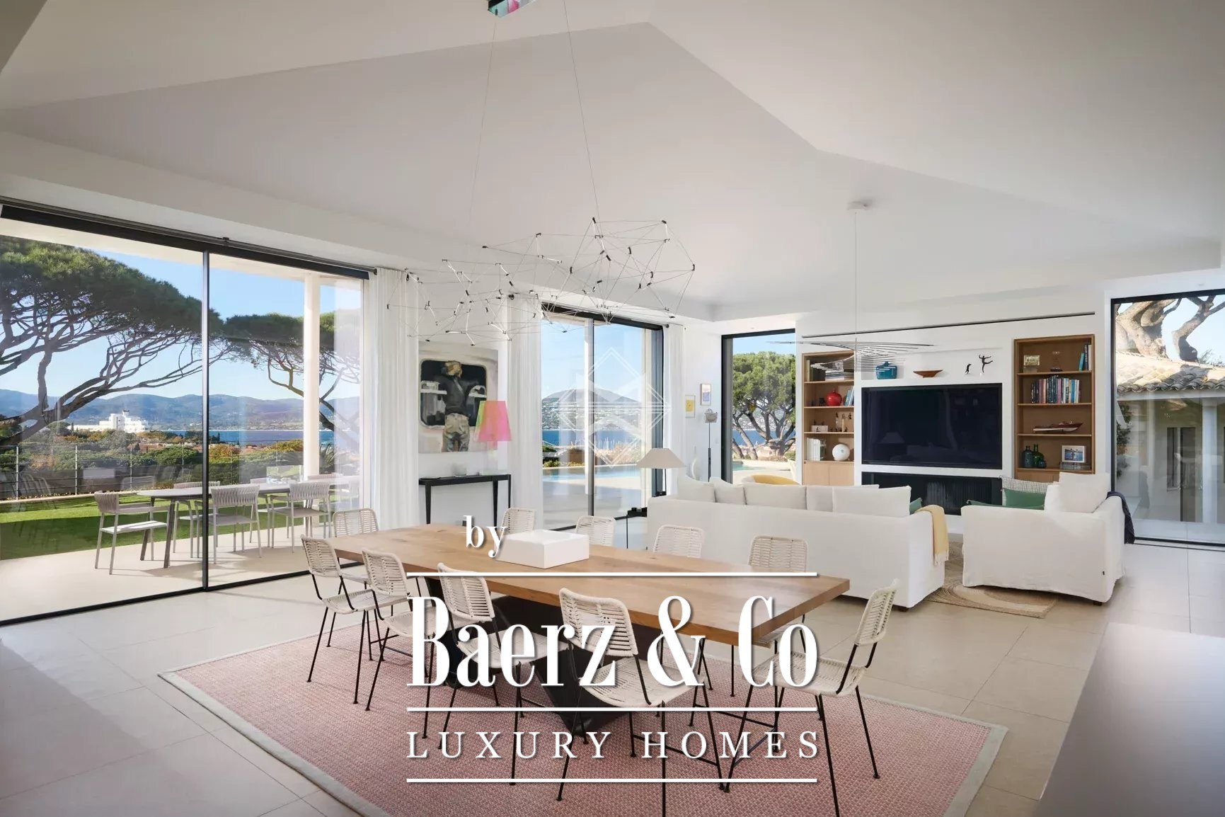 Deze villa in Saint-Tropez biedt een dagelijks ritme dat wordt bepaald door licht en openheid, met panoramisch uitzicht over zee en het dorp vanaf een rustig, westelijk gelegen perceel. De moderne woning van 368 m² beschikt over royale open leefruimtes en vijf slaapkamers, waarbij de verschillende vertrekken naadloos in elkaar overlopen. Slechts één kilometer verwijderd van Place des Lices, combineert de locatie directe verbondenheid met het kloppende hart van Saint-Tropez met rust en privacy voor de bewoners.