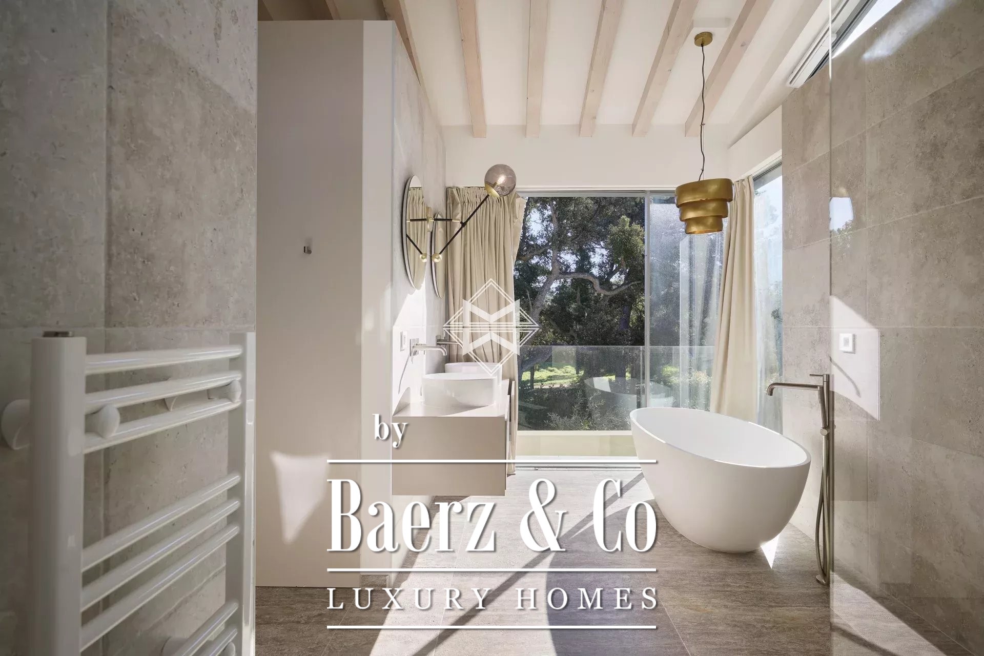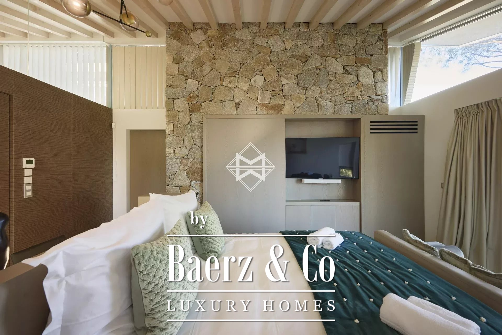Kenmerken zoals airconditioning, radiatorverwarming, dubbele beglazing, alarmsysteem, kluis en intercom waarborgen comfort en veiligheid. Een garage en elektrisch toegangshek zorgen voor een gemakkelijke bereikbaarheid. Deze villa met zeezicht te koop in Saint-Tropez verenigt functionaliteit en elegantie, en biedt een levensstijl die zowel sereen als onmiskenbaar mediterraan is.