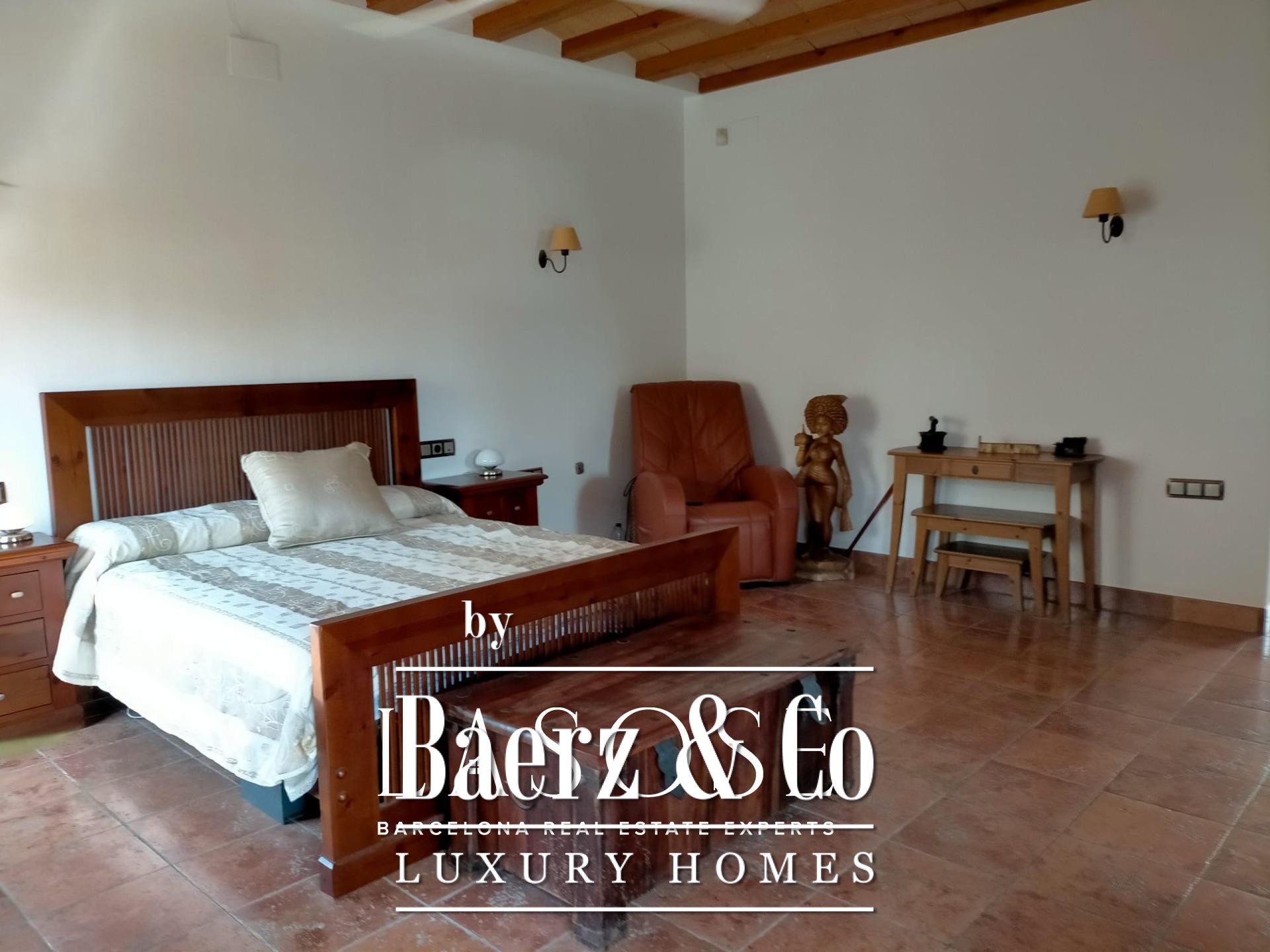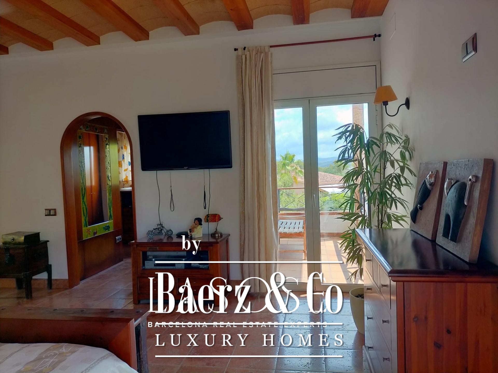 Villa Sant Pere de Ribes is rustig gelegen in de gewaardeerde woonwijk Els Cards, tussen Sitges en Sant Pere de Ribes, waar privacy en panoramisch uitzicht iedere woonervaring uniek maken. Deze villa met vijf slaapkamers en drie badkamers combineert traditionele Spaanse architectuur met eigentijdse verfijning. De recent gerenoveerde binnenruimtes behouden authentieke details zoals bogen en natuurlijke texturen, gecombineerd met strakke moderne lijnen en warme tinten. De open indeling van de begane grond verbindt keuken, eetkamer en woonkamer naadloos, met een overvloed aan daglicht door ramen aan twee zijden. Een karakteristieke open haard vormt het hart van de woonkamer en creëert het hele jaar door een uitnodigende plek om samen te komen.