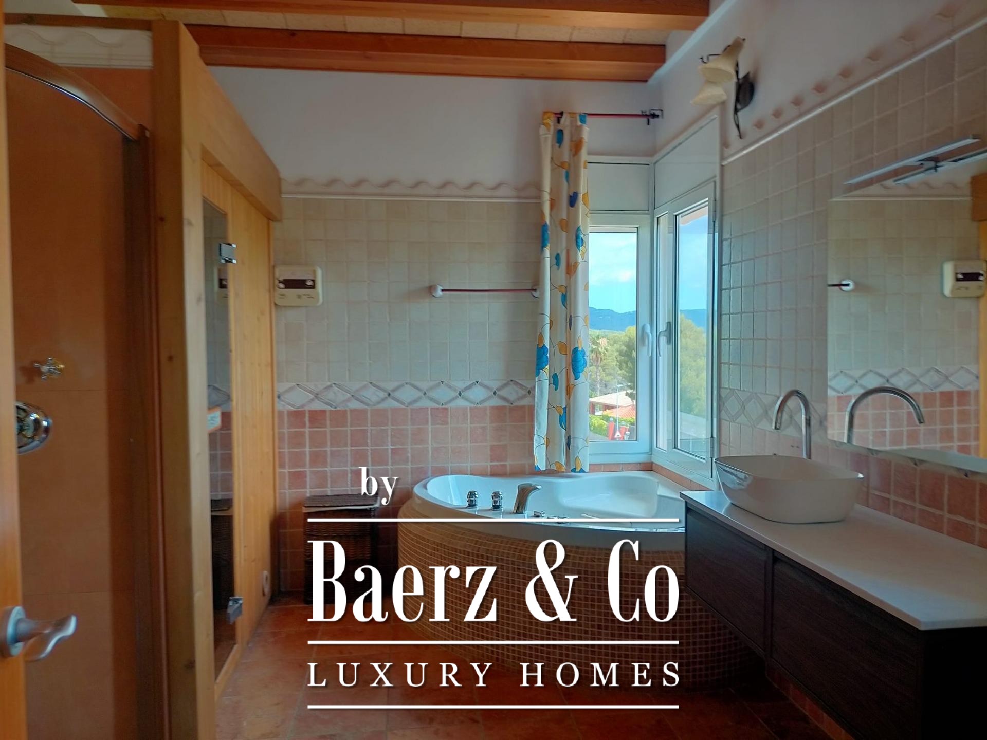 Buiten is de villa omgeven door een weelderige tuin met volwassen mediterrane beplanting, gazon en een eeuwenoude olijfboom, die het zwembad omlijst met natuurstenen randen en een waterval, en zo het ideale decor biedt voor ontspannen middagen en stijlvolle bijeenkomsten. Praktische ruimtes zijn een ruime privé garage en bergruimte, geschikt voor auto’s en seizoensgebonden bezittingen. Airconditioning, verwarming, beveiligingssystemen en een barbecue verhogen het comfort en gebruiksgemak.