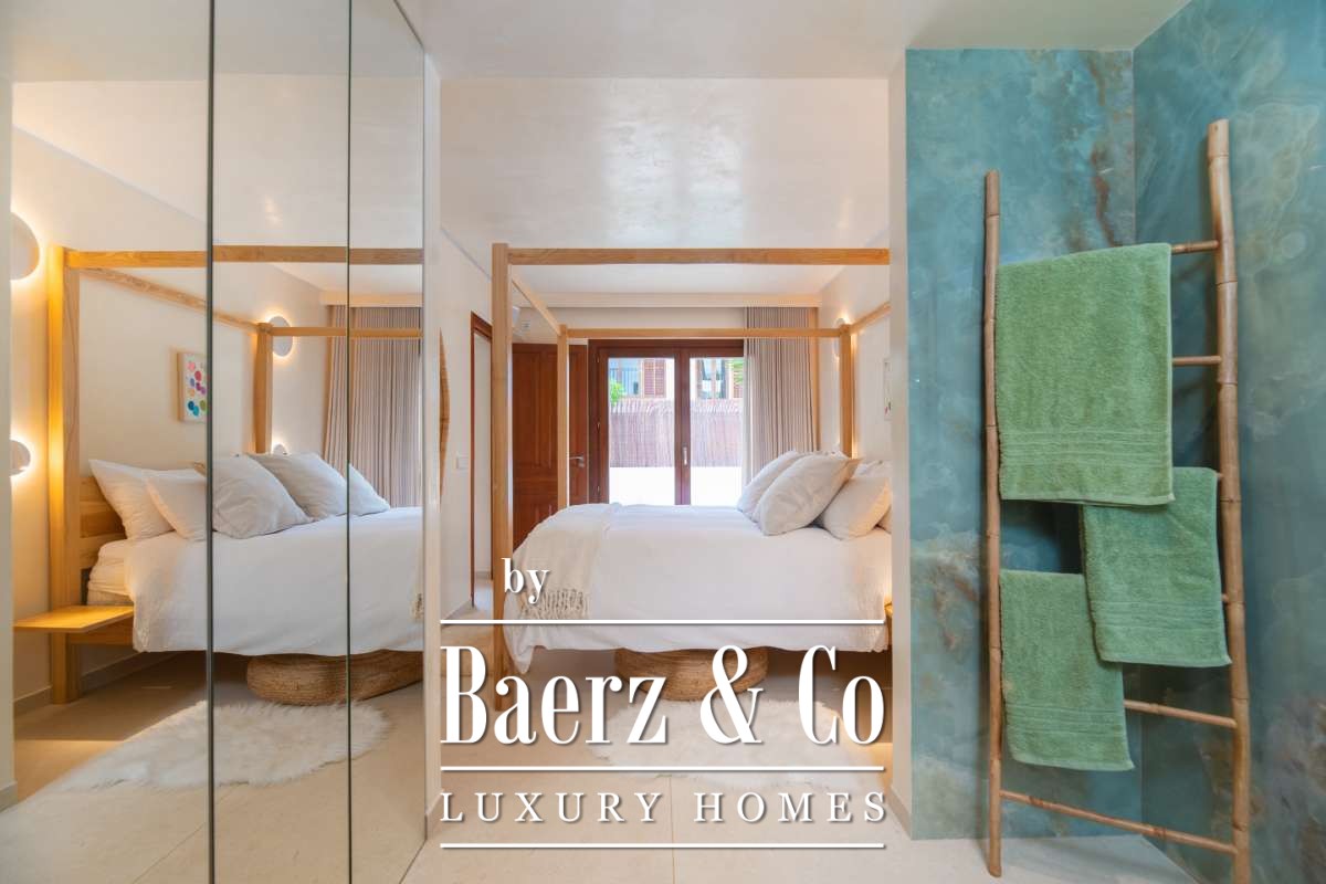 is praktisch ingedeeld en sluit subtiel aan op de leefruimte. Beide slaapkamers bieden rust en privacy, terwijl de badkamers zijn uitgevoerd met hoogwaardige materialen en een verfijnde afwerking. Elk element is zorgvuldig gekozen – design en comfort gaan hier hand in hand.De buitenruimtes Het buitengedeelte van 72 m² maakt deze woning echt bijzonder. Er is een ruime terras met een stijlvolle loungehoek en een eettafel – perfect voor lange avonden van buiten dineren. Het grote privézwembad is een absoluut hoogtepunt: ideaal om af te koelen op warme dagen. Dit is een plek die gemaakt is voor het buitenleven: ontspannen ontbijten in de ochtend, een goed glas wijn in de namiddag, en zwoele zomeravonden met vrienden onder de sterren.Dit appartement is ideaal voor wie op zoek is naar kwaliteit, comfort en een zorgeloos thuis op Ibiza. Een zeldzame kans in het hart van Santa Gertrudis. We nodigen u graag uit voor een bezichtiging zodat u zelf kunt ervaren hoe bijzonder deze plek is.