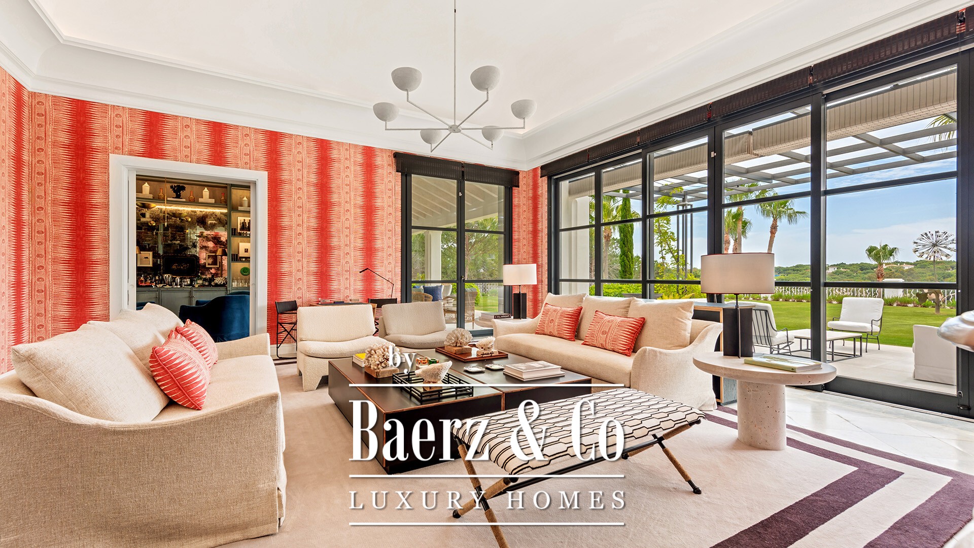 Villa Sotogrande met panoramisch uitzicht op de golfbaan geldt als een toonbeeld van hedendaagse Andalusische architectuur en is gesitueerd op een perceel van 5.675 m² met zicht over de Almenara Golf Course. De zuidgeoriënteerde villa beschikt over acht slaapkamers en negen badkamers, verdeeld over 1.300 m² zorgvuldig vormgegeven leefruimte, en wordt volledig gemeubileerd aangeboden door de gerenommeerde ontwerpster Luisa Olazabal, met uitzondering van geselecteerde kunstwerken en persoonlijke bezittingen.