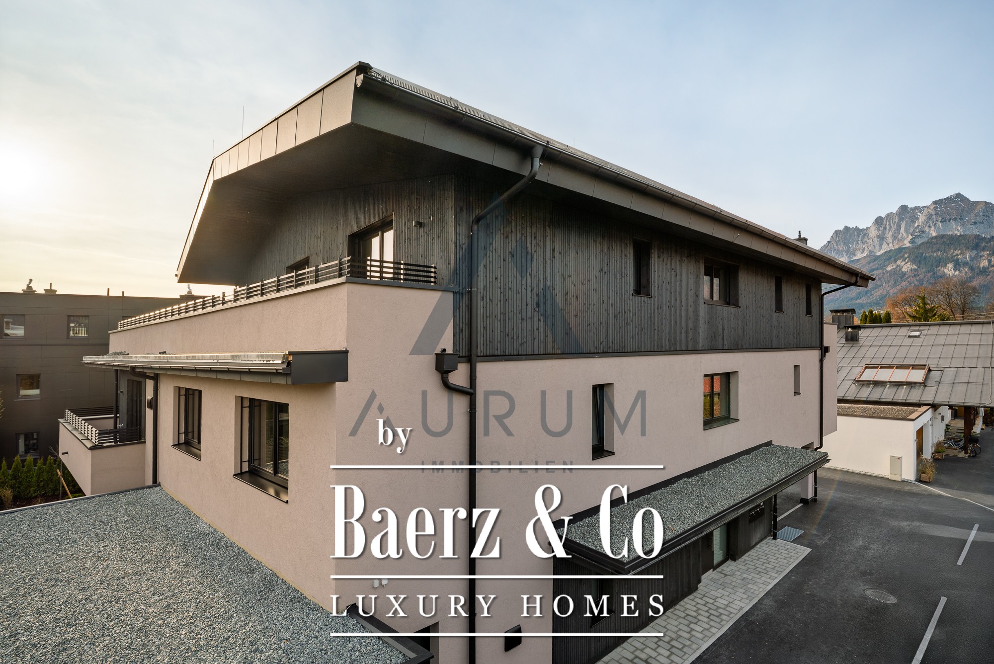 Het penthouse in St. Johann in Tirol brengt stedelijke elegantie en berguitzichten op bijzondere wijze samen. Gelegen in een discreet, nieuw gebouw met slechts vijf verfijnde residenties, combineert deze woning van 175 m² een centrale ligging met zorgvuldig vormgegeven privacy. Bij binnenkomst valt direct het overvloedige licht op, dat via grote raampartijen de 110 m² zonnenterras bereikt – hier vormen het ononderbroken uitzicht op de Kitzbüheler Horn en de Wilder Kaiser het decor. Binnen zorgen drie slaapkamers en twee badkamers, gekenmerkt door strakke lijnen en hoogwaardige afwerking, voor dagelijks comfort. Een aparte dressing en vloerverwarming versterken het gevoel van ingetogen luxe. De haard in de woonkamer biedt authentieke warmte. Duurzame bouwmethoden en een hernieuwbaar energiesysteem weerspiegelen een toekomstgerichte visie. Directe lifttoegang, een privéberging en twee overdekte parkeerplaatsen verhogen het woonplezier. U woont hier op steenworp afstand van St. Johann’s bekende voorzieningen – winkels, scholen, medische diensten – te midden van skipistes, langlaufloipes en wandelroutes. Dit penthouse is zowel een toevluchtsoord als een uitkijkpunt over het beste wat het Alpenleven te bieden heeft, en vormt een unieke kans voor wie een luxe penthouse zoekt in St. Johann in Tirol.