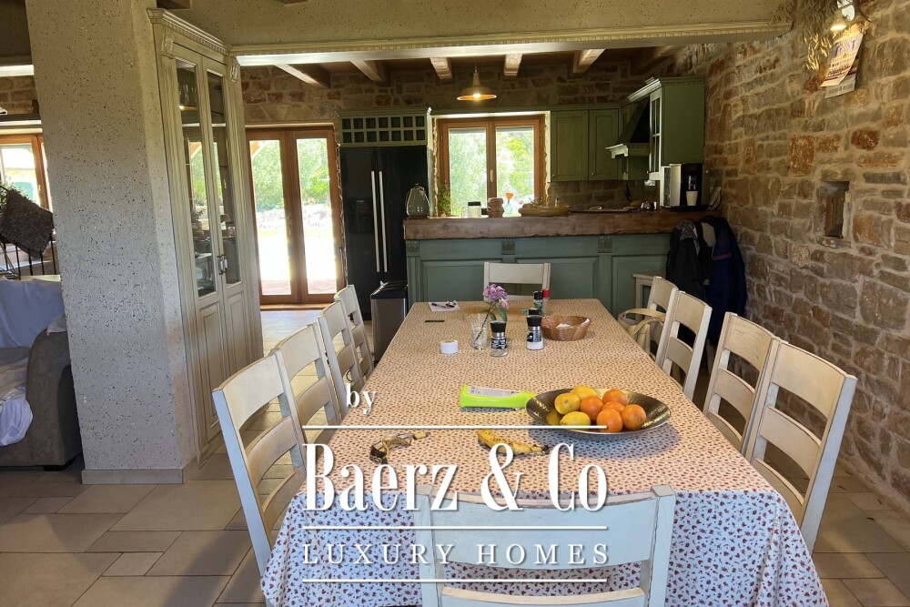 De drie bijgebouwen bieden extra leef-, ontvangst- en servicefuncties; één beschikt over een keuken, open haard en royale eetruimte, een ander dient als wasruimte met extra badkamer, en het derde bijgebouw is ingericht als comfortabele gastenverblijf. Een riant zwembad en een weelderige mediterrane tuin, met meer dan honderd olijf-, lavendel-, rozemarijn-, citrus- en immortellebomen, geven buiten het karakter van deze plek.