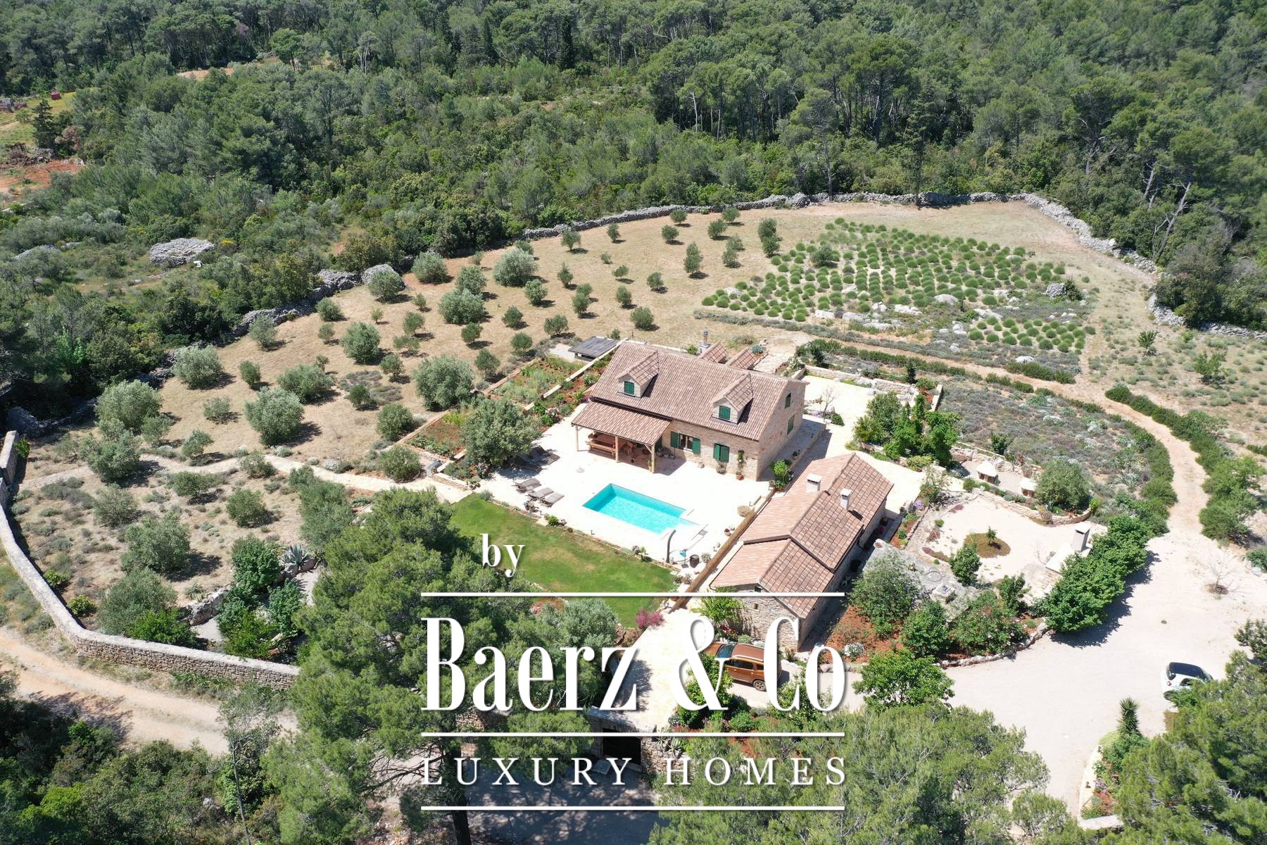 De villa is voorzien van airconditioning en wordt deels van energie voorzien via zonnepanelen. Er is ruimte voor een wijnkelder in het souterrain. De bouw werd in 2016 afgerond na een bouwtijd van zes jaar; sindsdien gaat deze villa volledig op in haar omgeving met behoud van modern comfort. Het rustige domein waarborgt privacy en ligt op slechts 800 meter van zee en nabij Stari Grad en Vrboska. Wie een luxe villa te koop zoekt in Stari Grad, vindt hier verfijnde afzondering en een authentiek gevoel van plaats – zeldzaam en bijzonder.