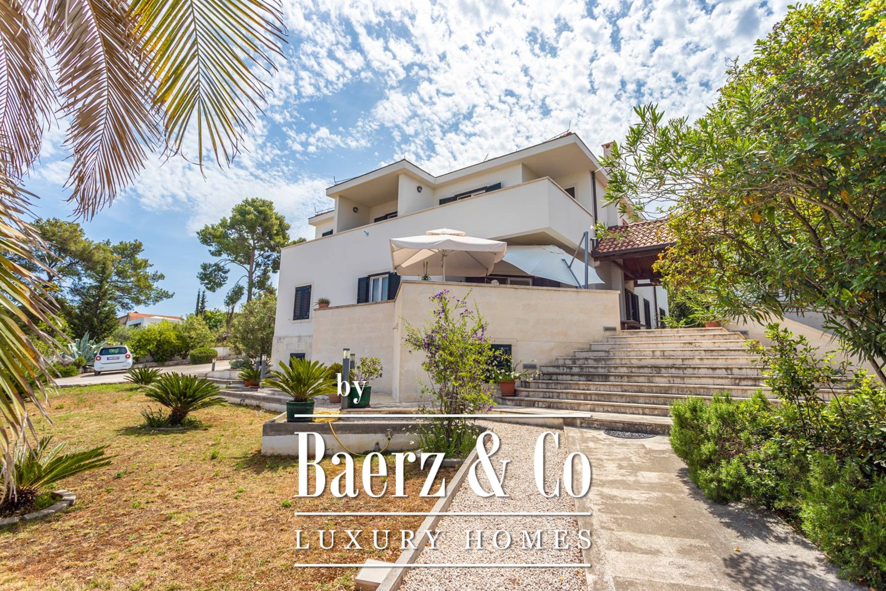 Villa Sutivan straalt een directe aanwezigheid uit, gelegen op slechts twintig meter van de Adriatische Zee in het rustige hart van Sutivan, Kroatië. Deze villa, verdeeld over 600 m² verfijnde woonruimte, is discreet gepositioneerd op een perceel van 1.665 m². De vier woonlagen bepalen moeiteloos het dagelijkse ritme: een souterrain met taveerne en bar, een voorbereide wellnessruimte, plaats voor een fitnessruimte en een praktische stookruimte. De begane grond biedt dagelijks comfort met een professionele keuken, een royale eetruimte, een lichte woonkamer en een interne garage.