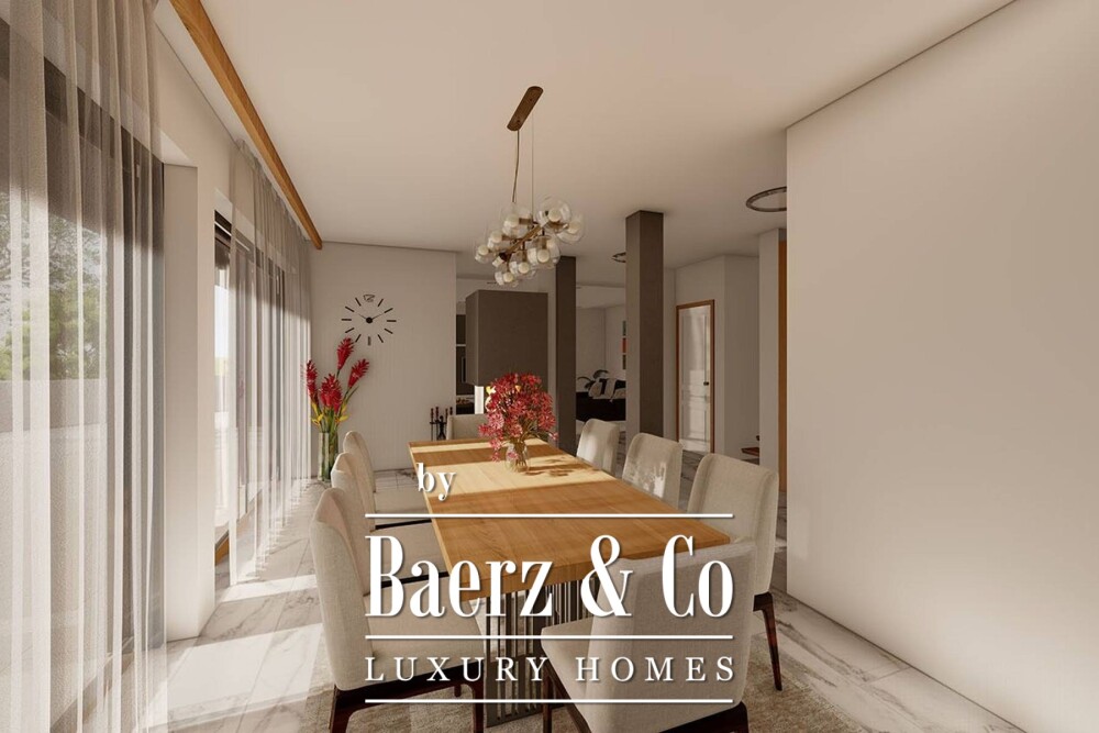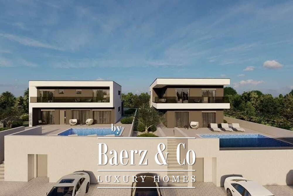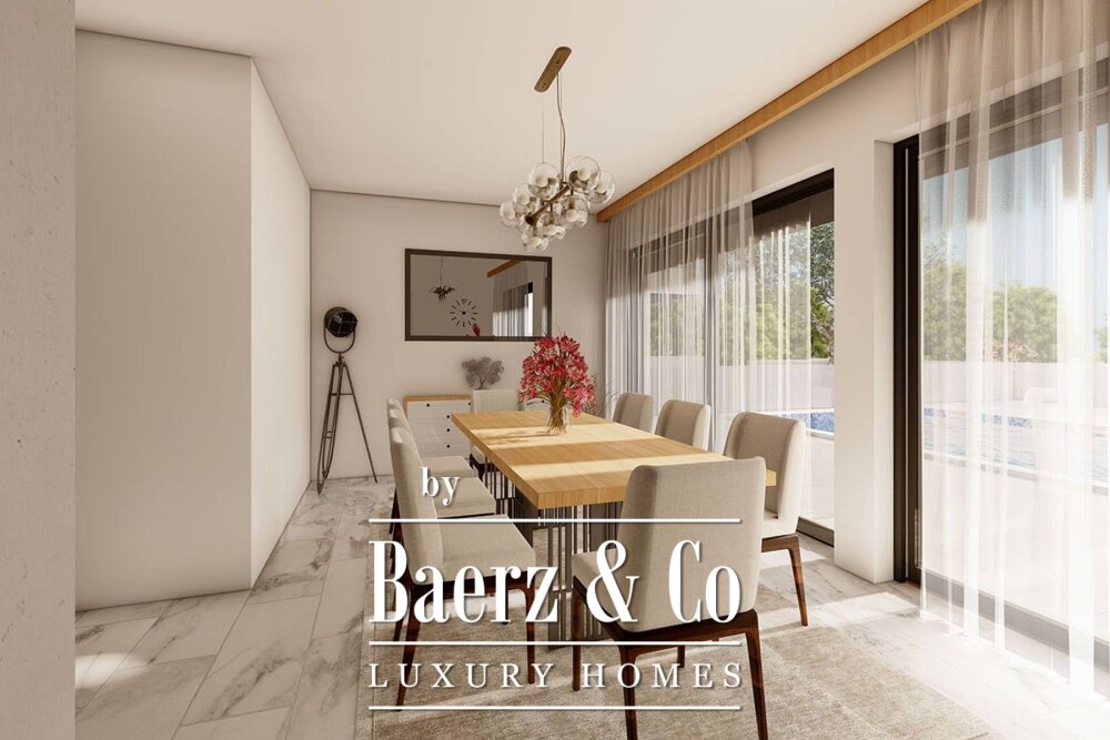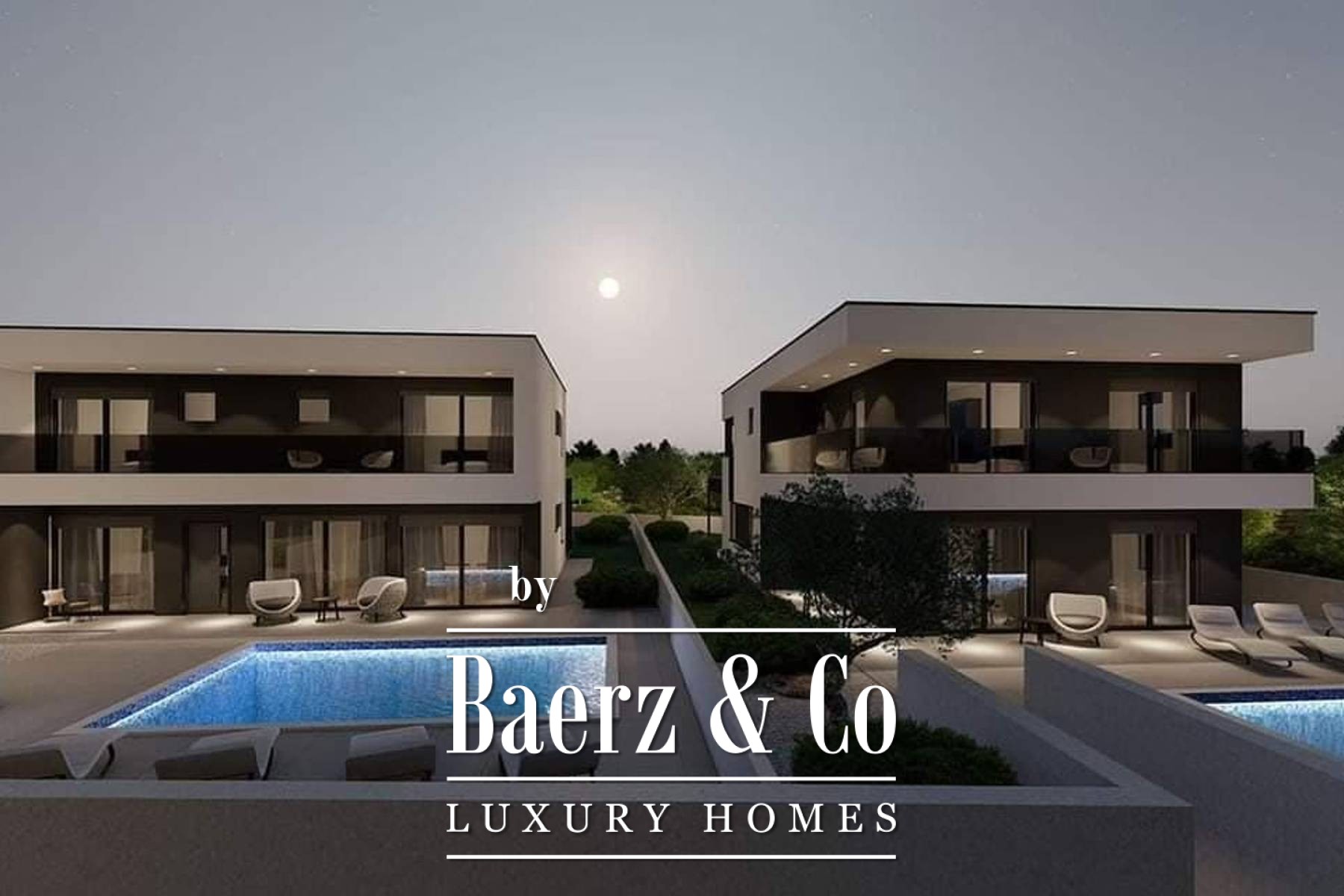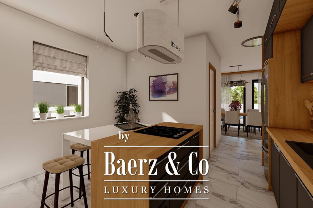 Villa Svetvinčenat biedt 200 m² moderne, vrijstaande woonruimte in een rustige enclave aan de rand van het bouwgebied, met zeldzaam zeezicht en een gevoel van rust. Deze villa, gelegen op een perceel van 714 m², combineert heldere architectuur met het Mediterrane licht. De begane grond ontvouwt zich vanuit de entree naar de keuken en eetruimte, verbonden met een royale woonkamer en twee overdekte terrassen. Een van deze terrassen grenst direct aan het zwembad, waardoor binnen- en buitenleven harmonieus in elkaar overlopen. De stille achterterras biedt juist ruimte aan buitenmaaltijden en ontmoetingen met barbecue.