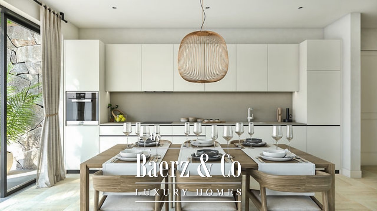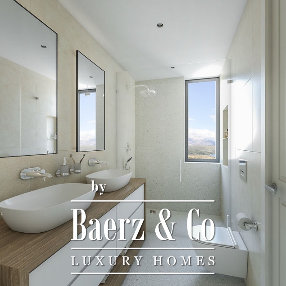 Glazen deuren laten overvloedig daglicht binnen, terwijl porseleinen tegels in elegante steen- en terrazzolook zorgen voor een ingetogen, moderne sfeer. De slaapkamer en badkamer zijn met dezelfde aandacht voor detail afgewerkt, met hoogwaardige apparatuur van Laufen, Catalano en Hansgrohe. Extra upgrades omvatten kasten met houtfineer en parket van hoge kwaliteit, wat een warme, tastbare uitstraling geeft aan het hedendaagse kleurpalet.