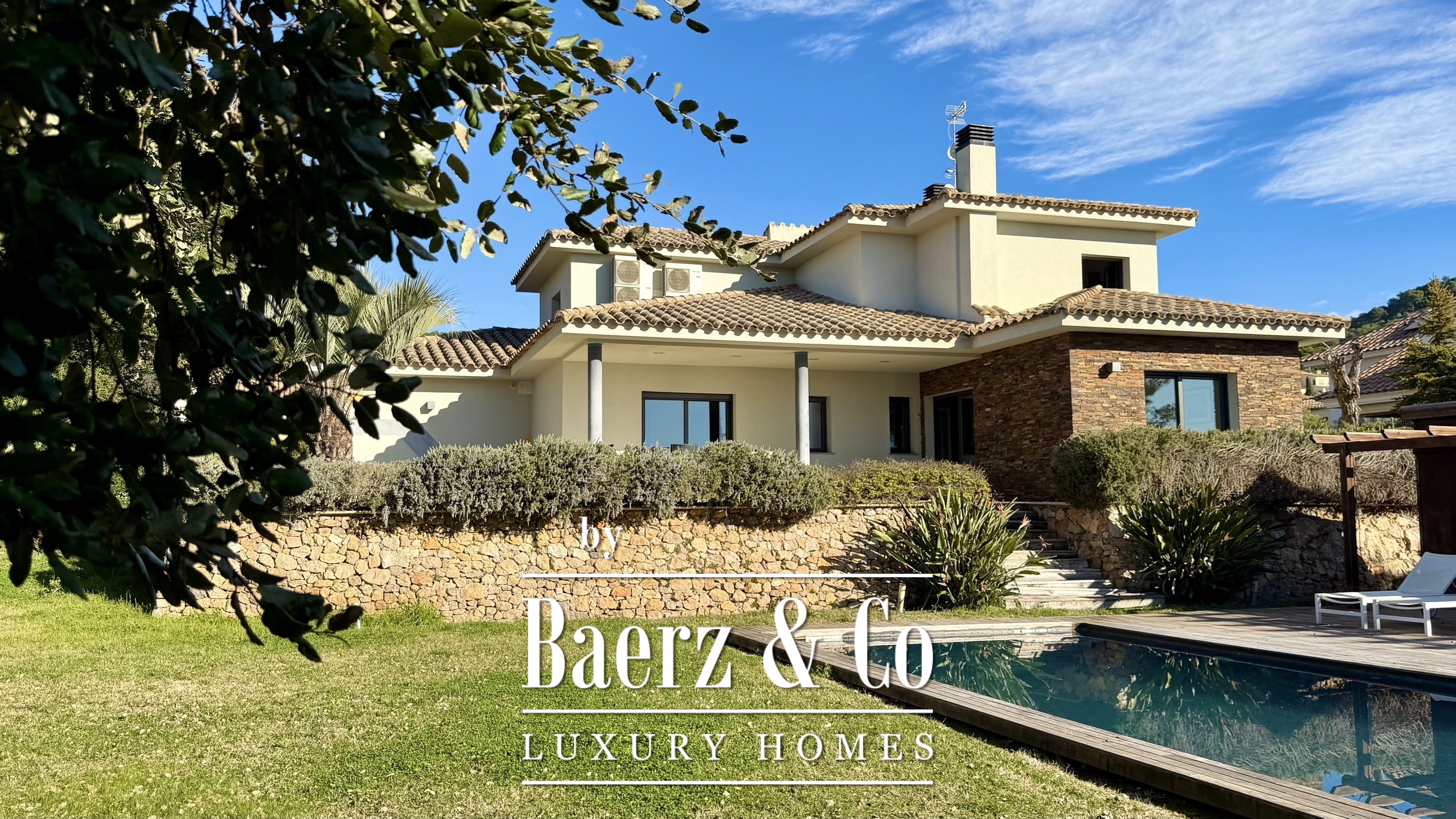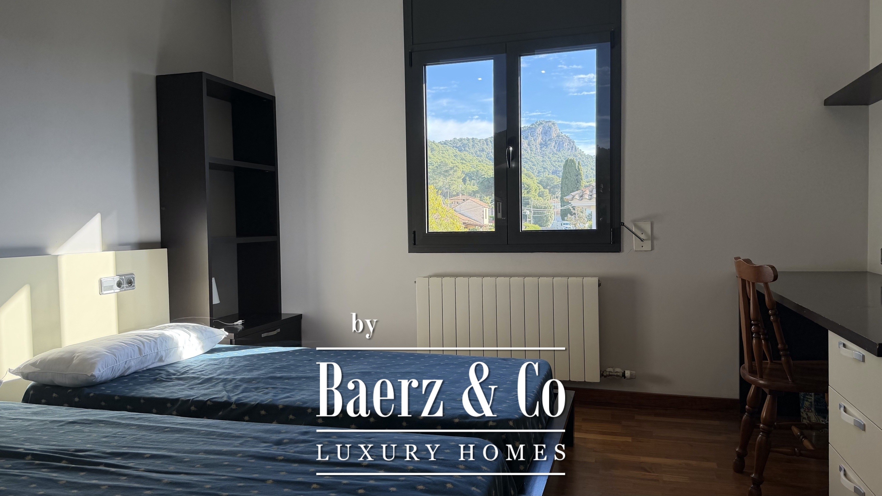 Op de bovenverdieping bevinden zich drie extra slaapkamers—twee met eigen badkamer—en een aparte badkamer, waardoor privacy voor familie en gasten is gewaarborgd. Alle kamers genieten van veel licht, ruimtelijkheid en rustgevend uitzicht, met zowel zee- als plattelandspanorama’s verspreid door de woning. Buiten draait het leven om de fraai aangelegde mediterrane tuin en het privézwembad, omlijst door terrassen en een paviljoen met kleedfaciliteiten.