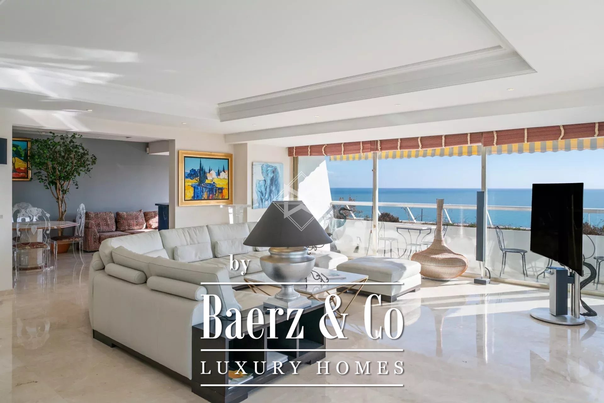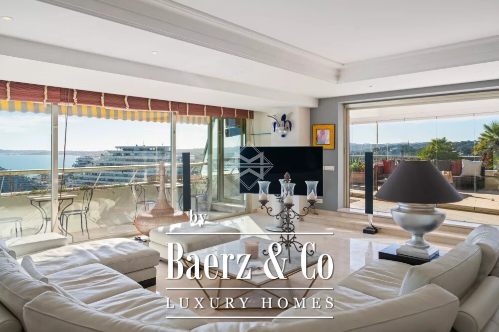 Appartement Villeneuve-Loubet biedt 204 m² modern wonen, hoog boven de kustlijn en gelegen binnen een geklasseerde erfgoedresidentie. Deze residentie, gebouwd in de 20e eeuw en bestaande uit 686 kavels, geniet een uitzonderlijke ligging met adembenemende panoramische vergezichten over de Baie des Anges en de Marina. De eerste indruk kenmerkt zich door een privé-entree en een uitnodigende hal die toegang geeft tot een lichte leefruimte. Een royale lounge en eetkamer sluiten naadloos aan op een terras van 120 m² en een op het zuiden gerichte balkon, en bieden voortdurend wisselende vergezichten over zee.