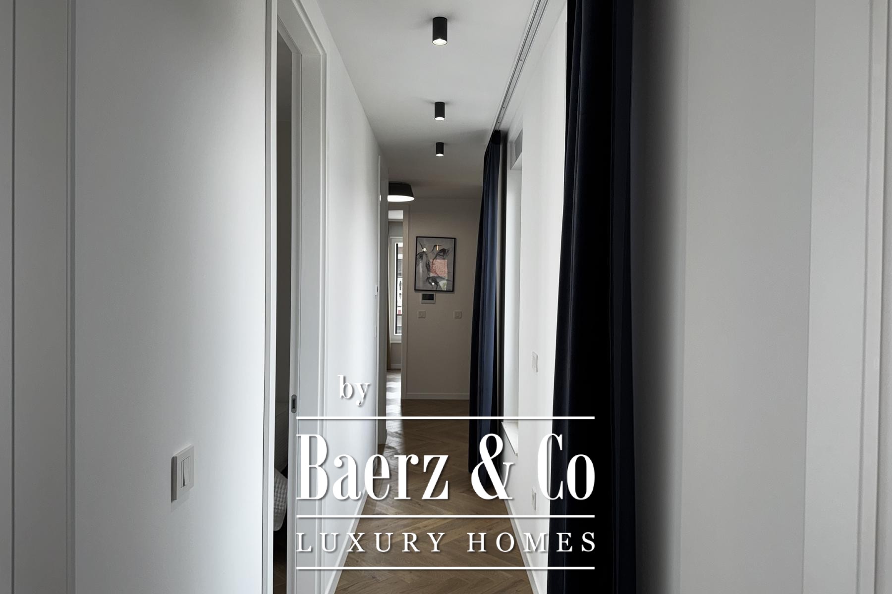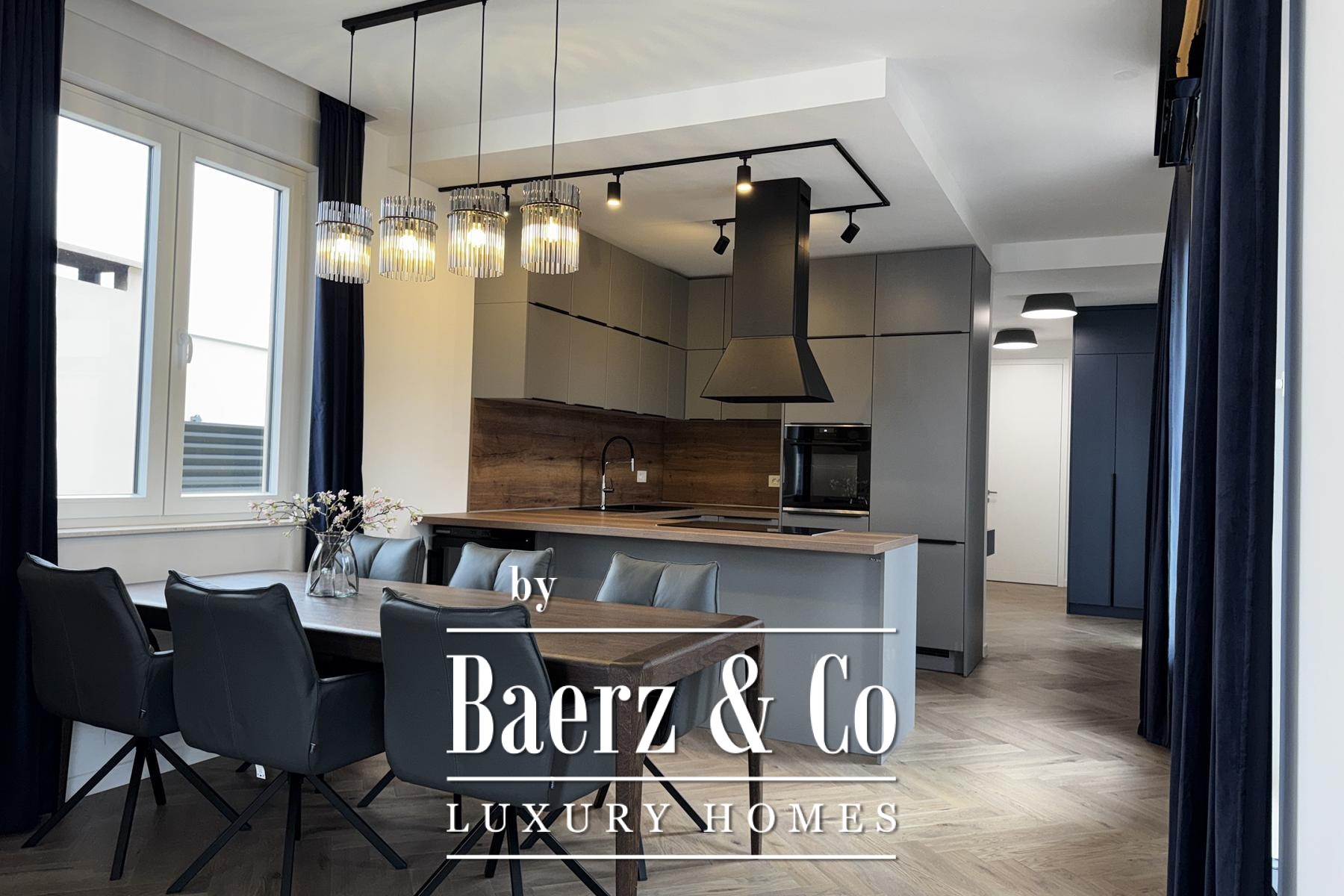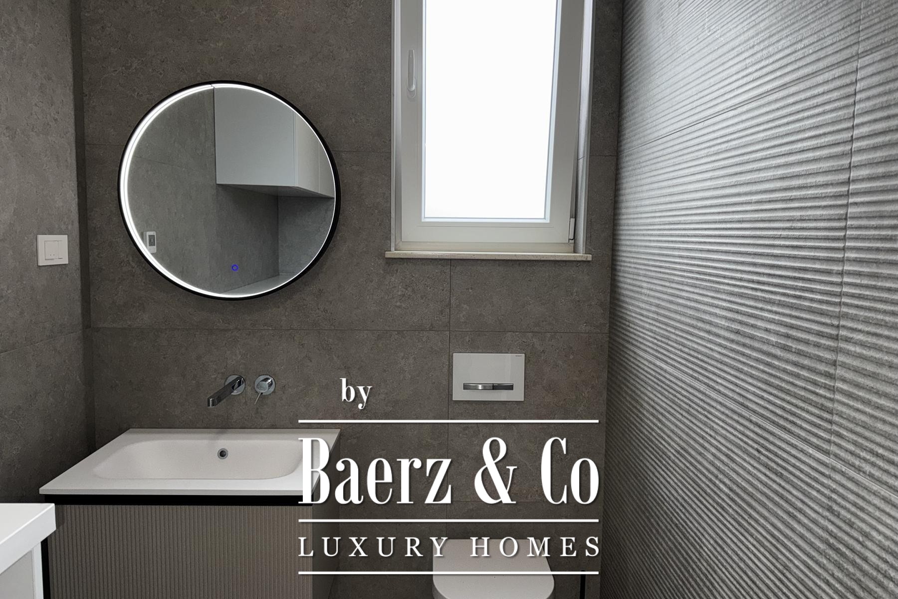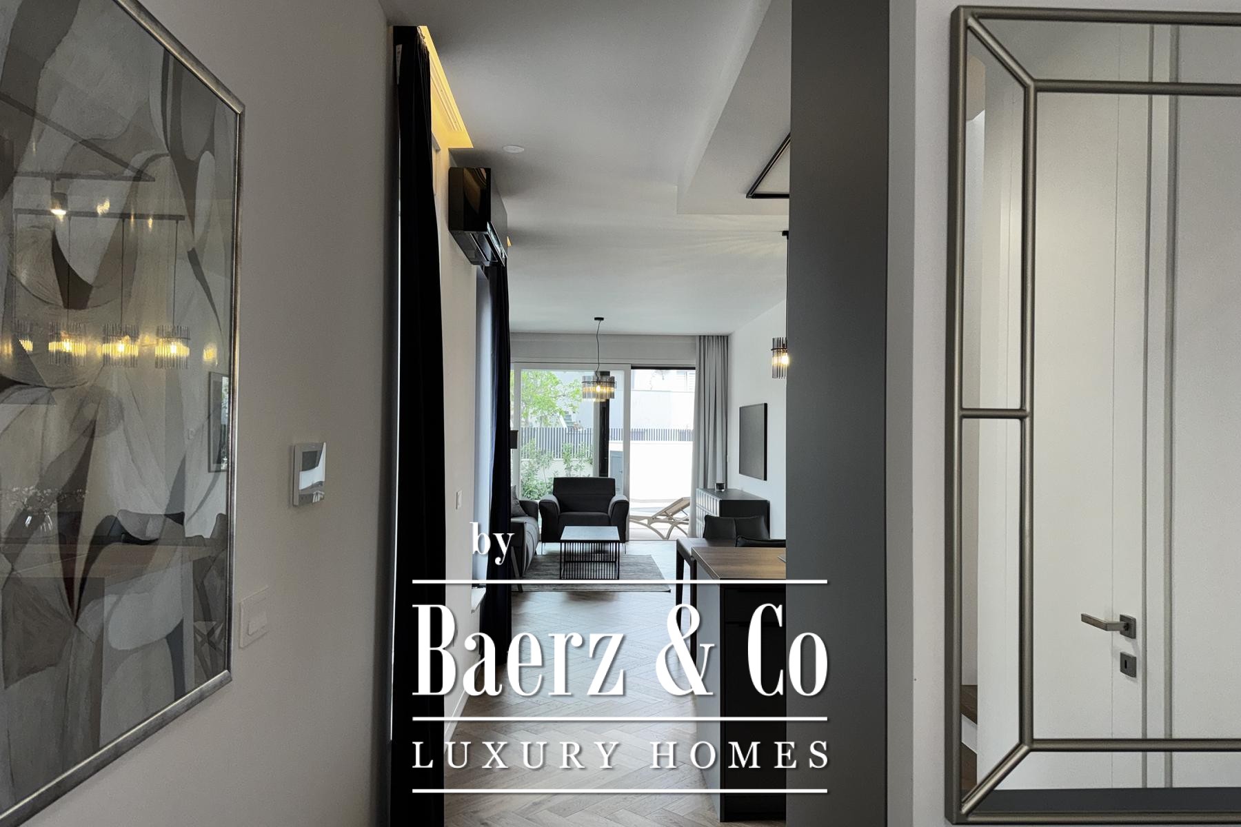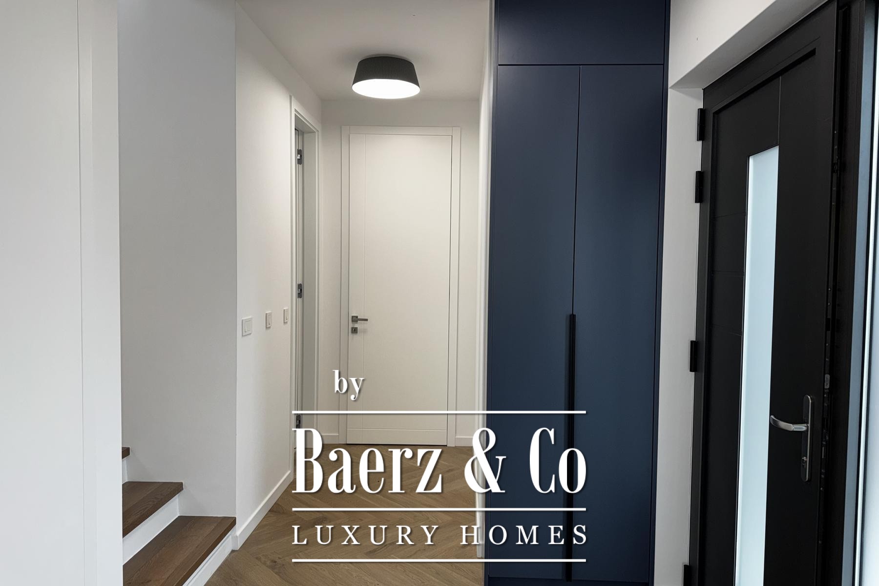 Op de eerste verdieping bevinden zich drie slaapkamers, waaronder een master suite met inloopkast en een secundaire suite met eigen badkamer en toegang tot het terras. Hierdoor ontstaat een doordachte balans tussen privacy en lichtinval. Hoogwaardige materialen, zoals drielaags parket, massief houten trappen, hoge deuren en kwaliteitsafwerking, zorgen voor een sfeer van ingetogen luxe.