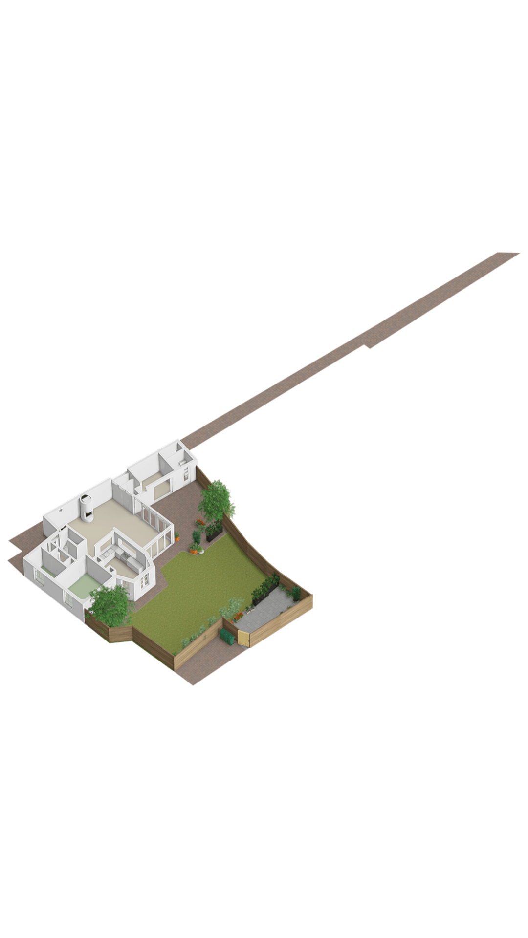 Zeer ruime, ommuurde tuin met veel privacy en een achterom met parkeerplaats. Een tweede parkeerplaats bevindt zich naast de voordeur.